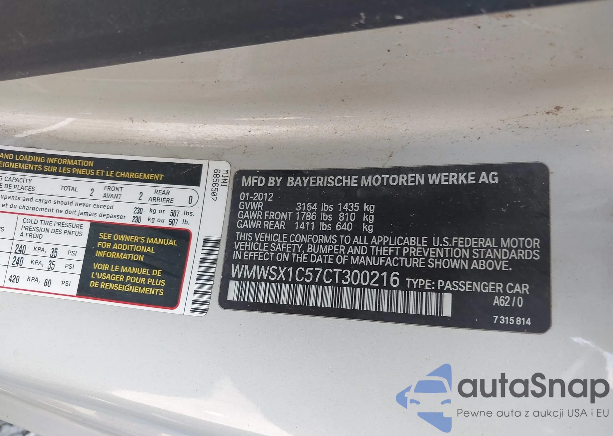 • VIN WMWSX1C57CT300216