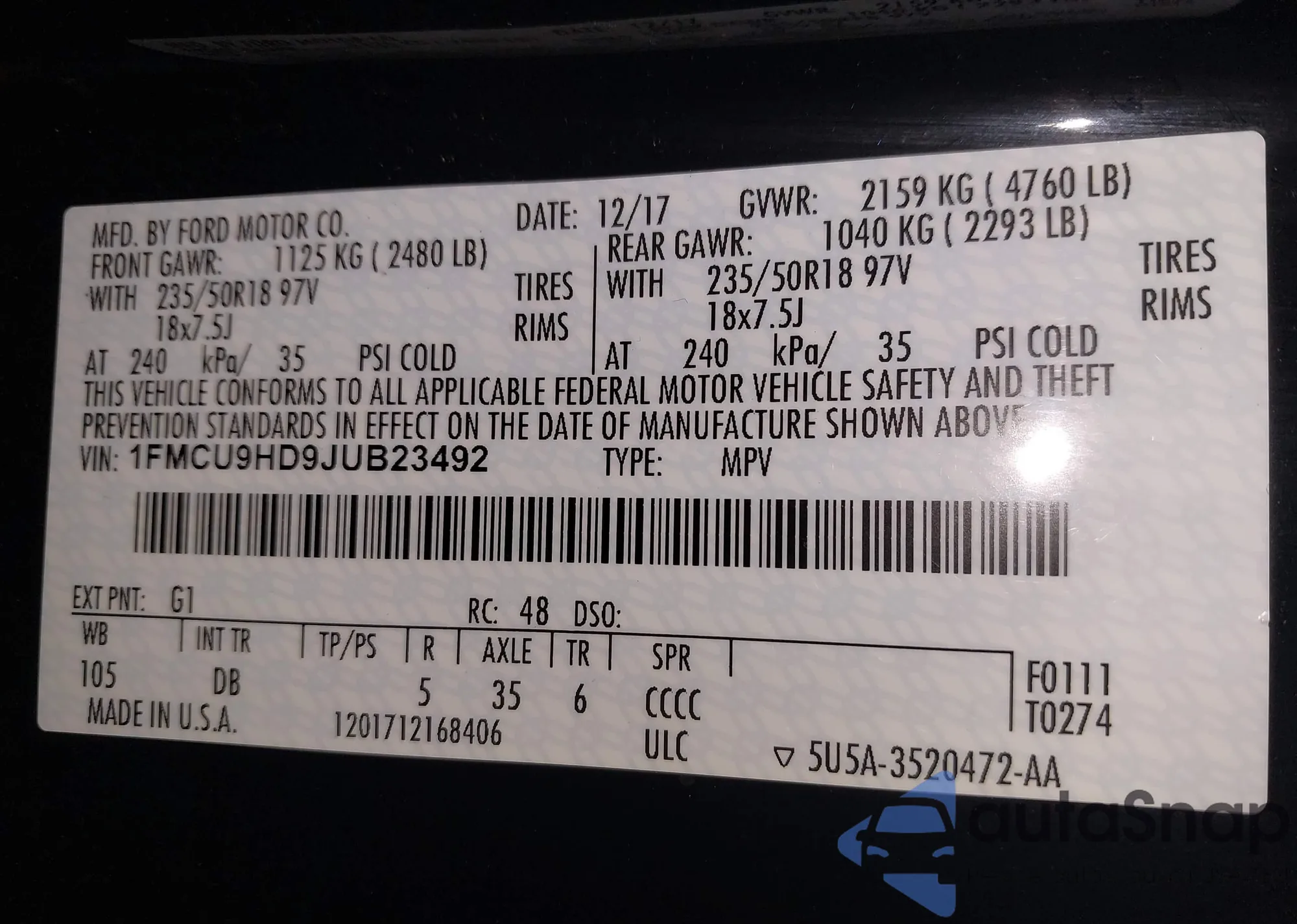 LOT: 42789659 VIN: 2FMDK4JC0BBA90081