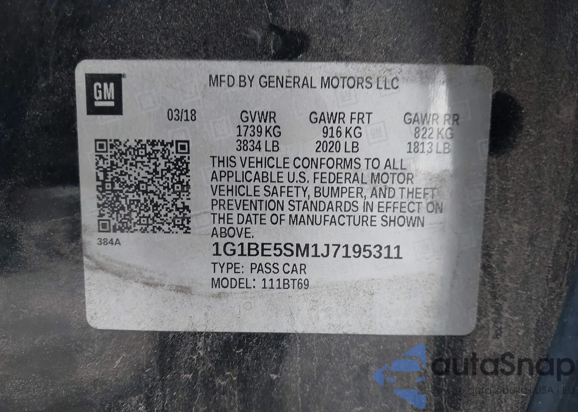 • VIN 4T1B11HK7JU068397