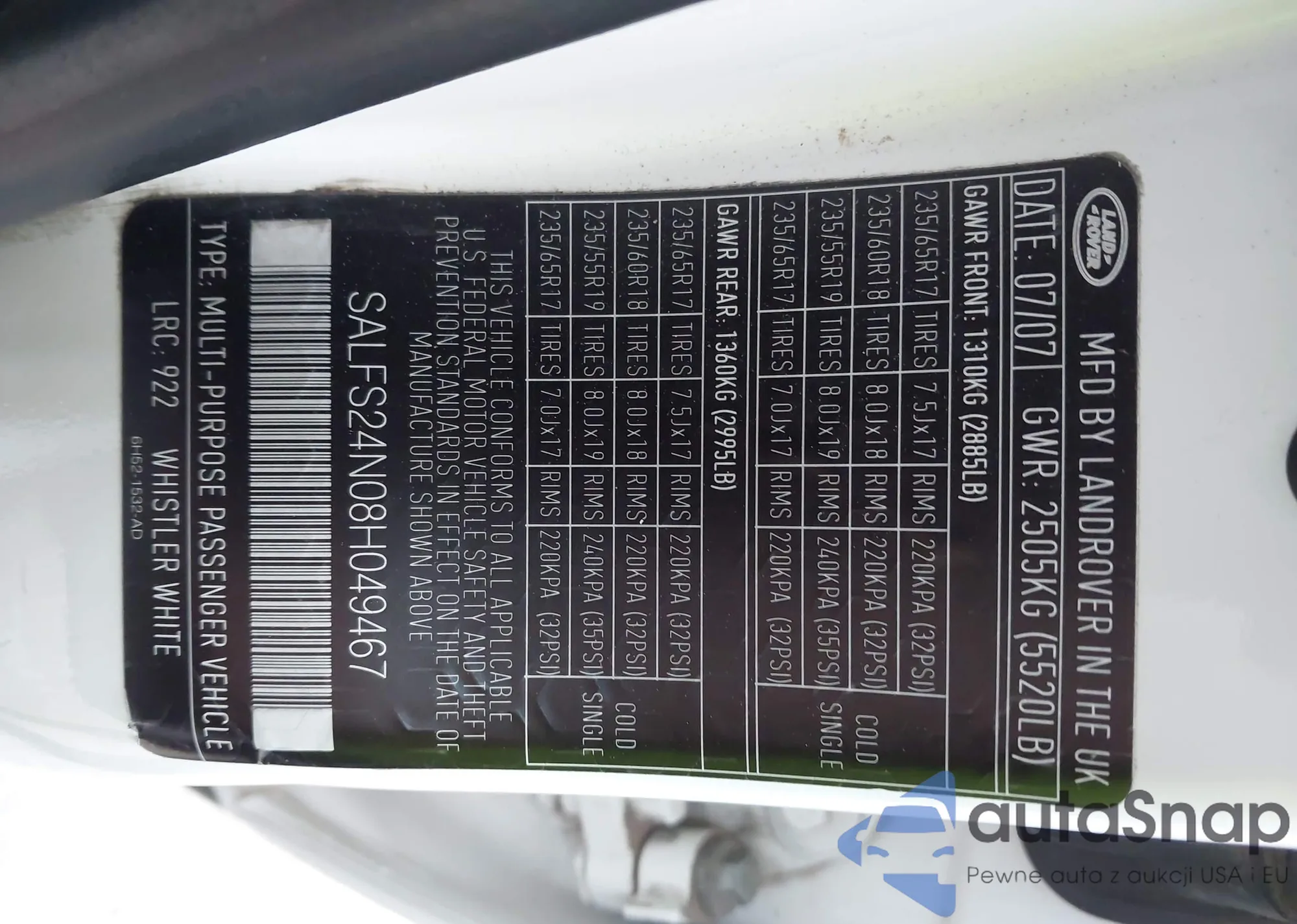 • VIN 5TDBK3EH2DS275195