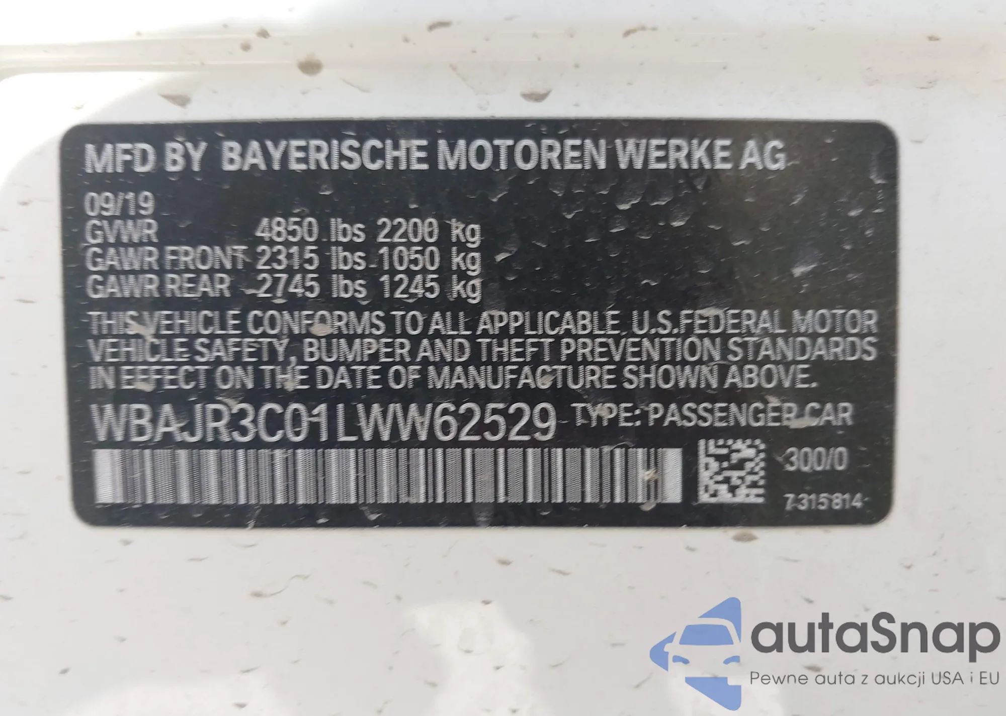 • VIN WBAJR3C01LWW62529