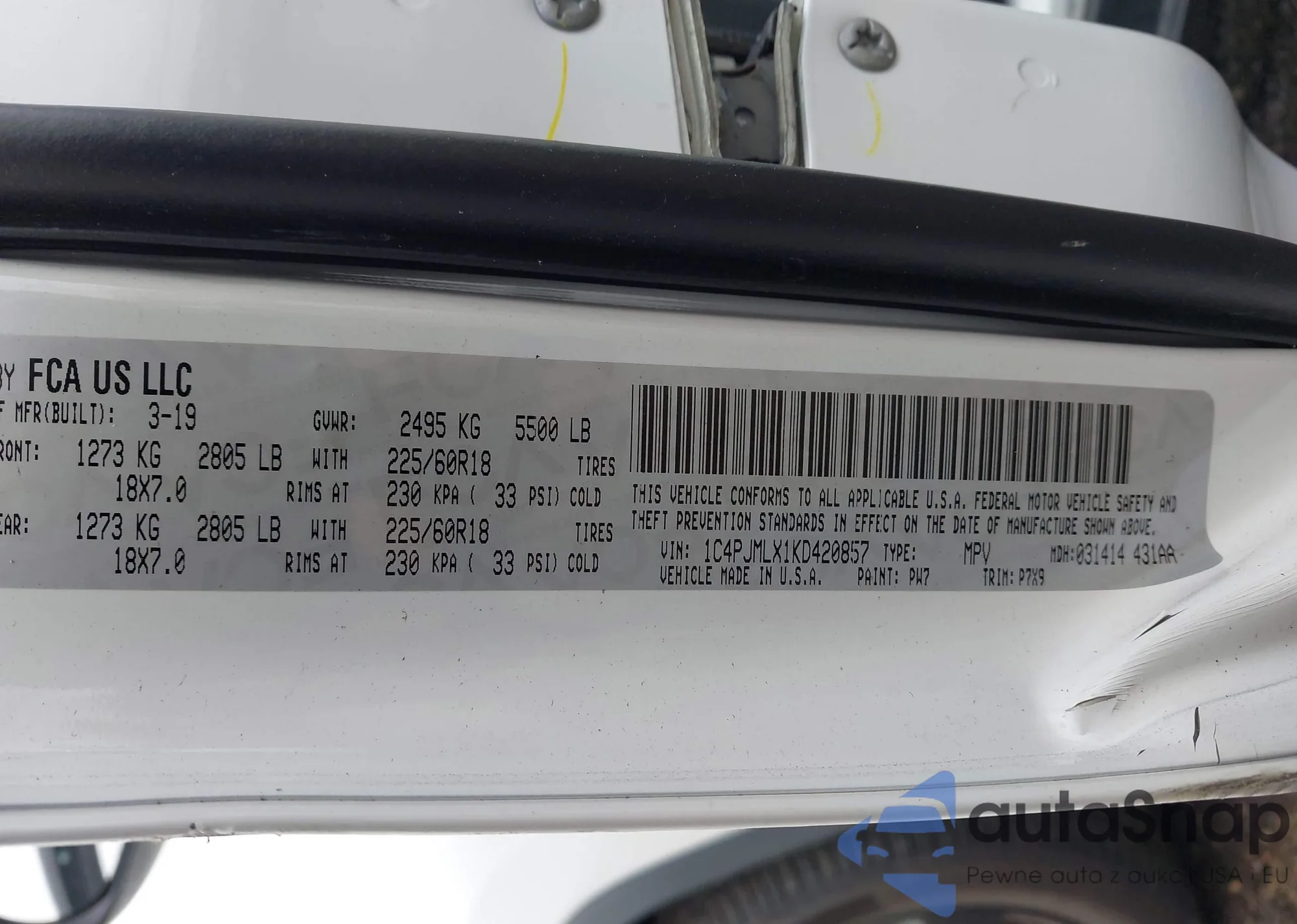 LOT: 43456722 VIN: 1C4PJMLX1KD420857