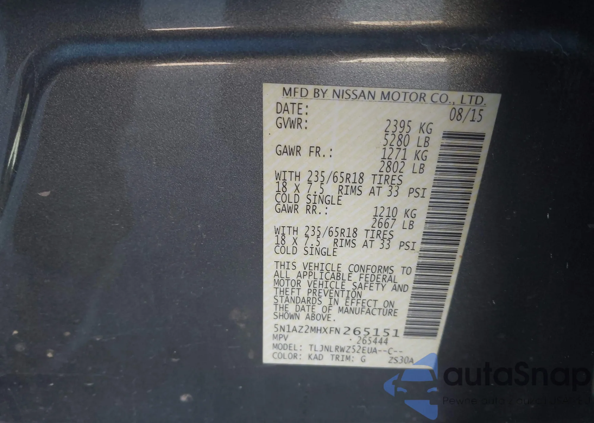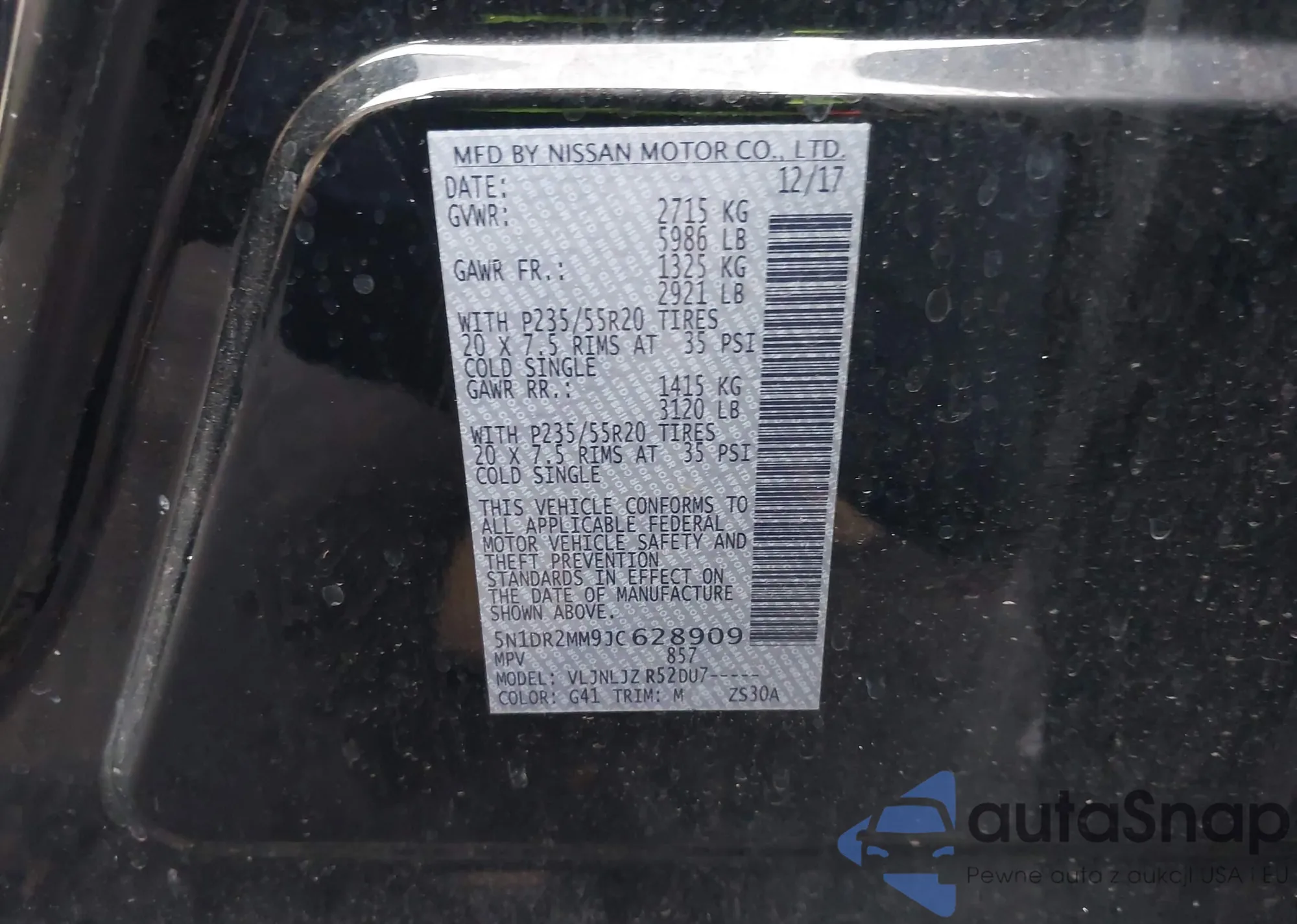 LOT: 43579480 VIN: 5N1DR2MM9JC628909