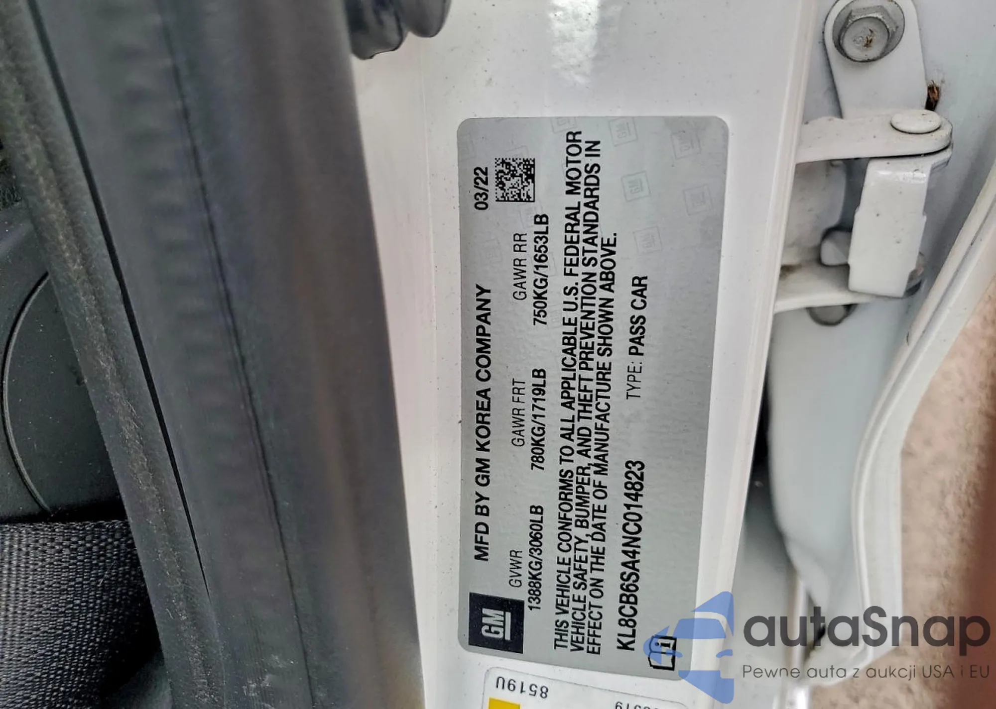 • VIN KL8CB6SA4NC014823