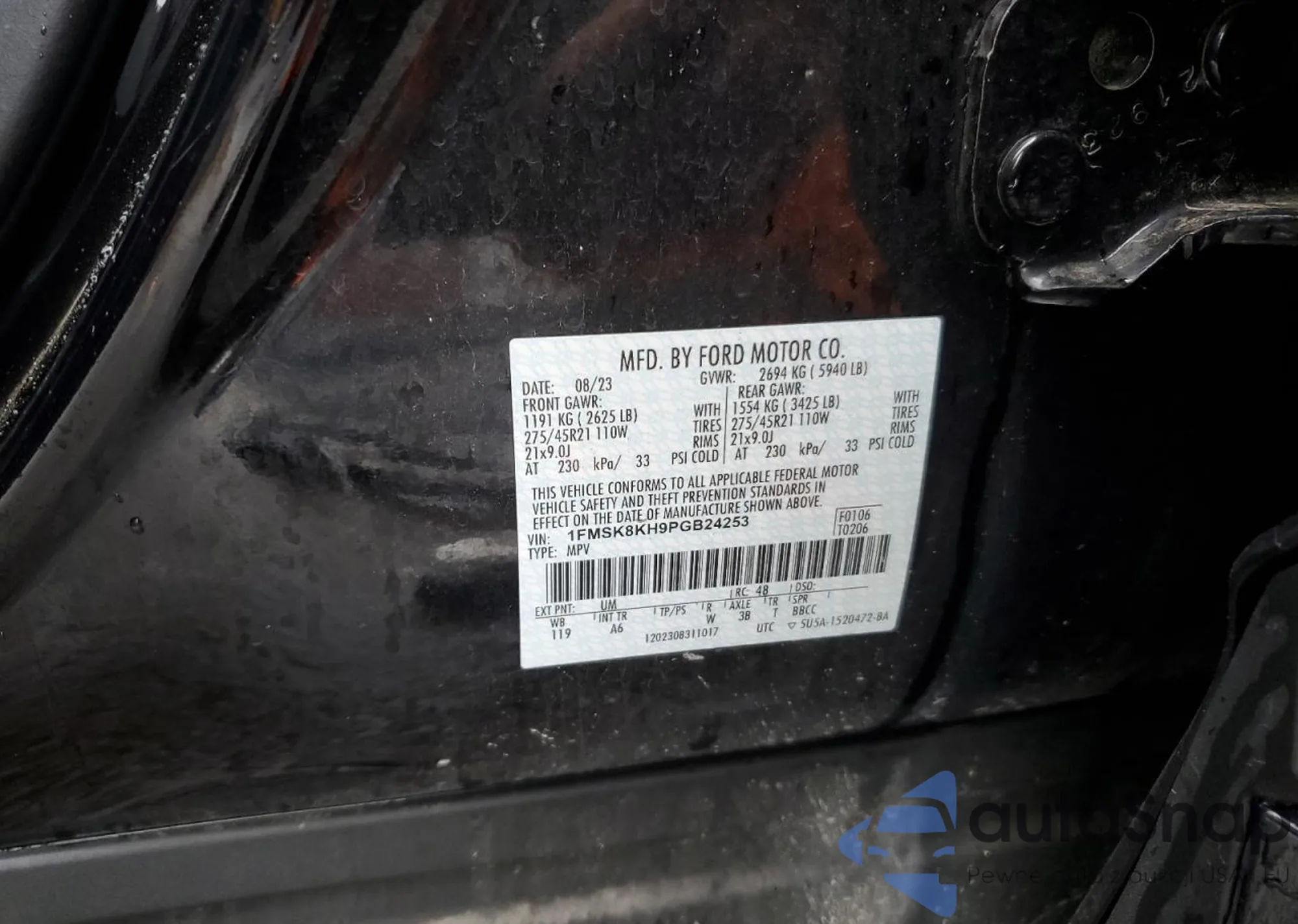 LOT: 83775805 VIN: 1FMSK8KH9PGB24253