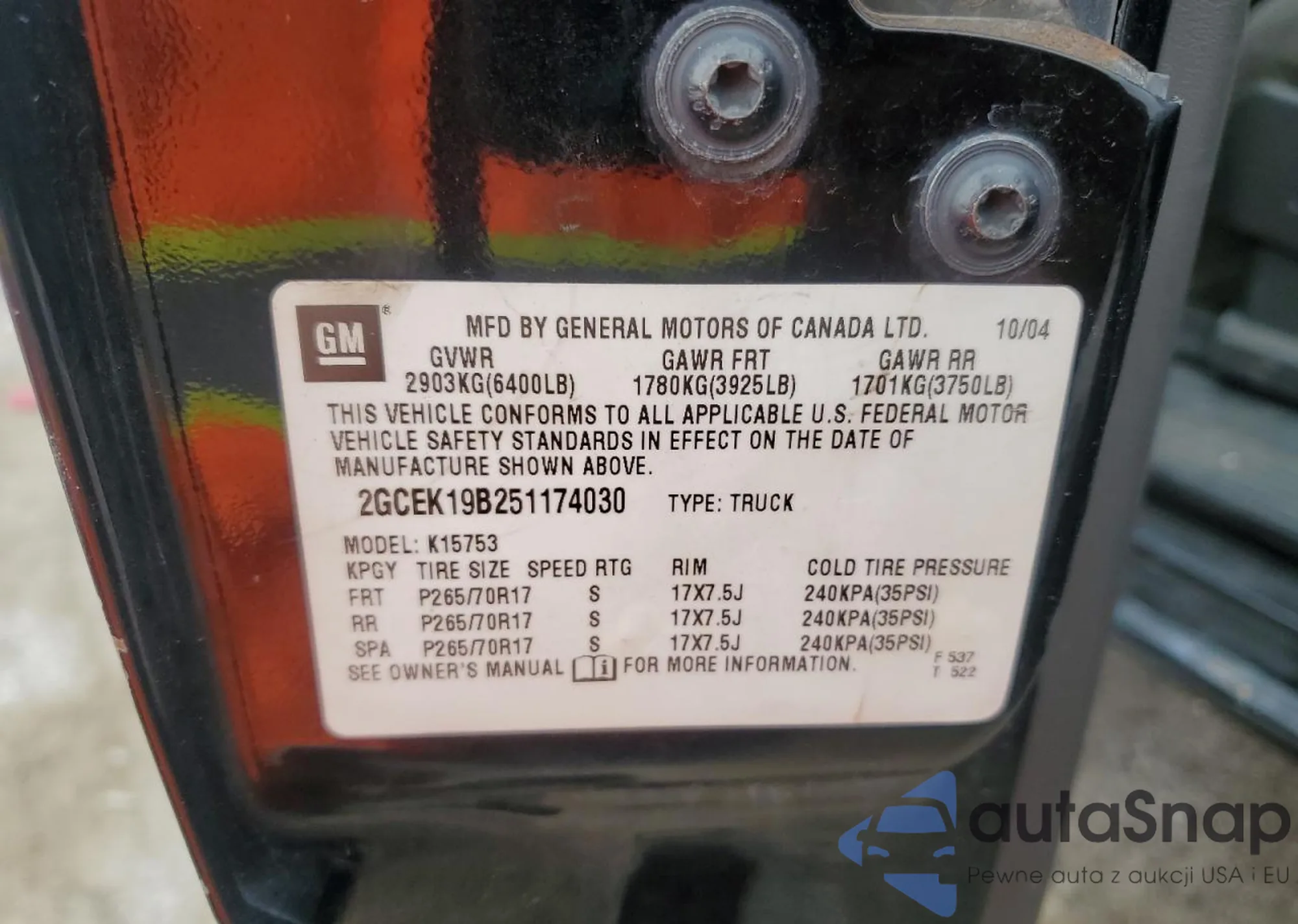 • VIN 2GCEK19B251174030