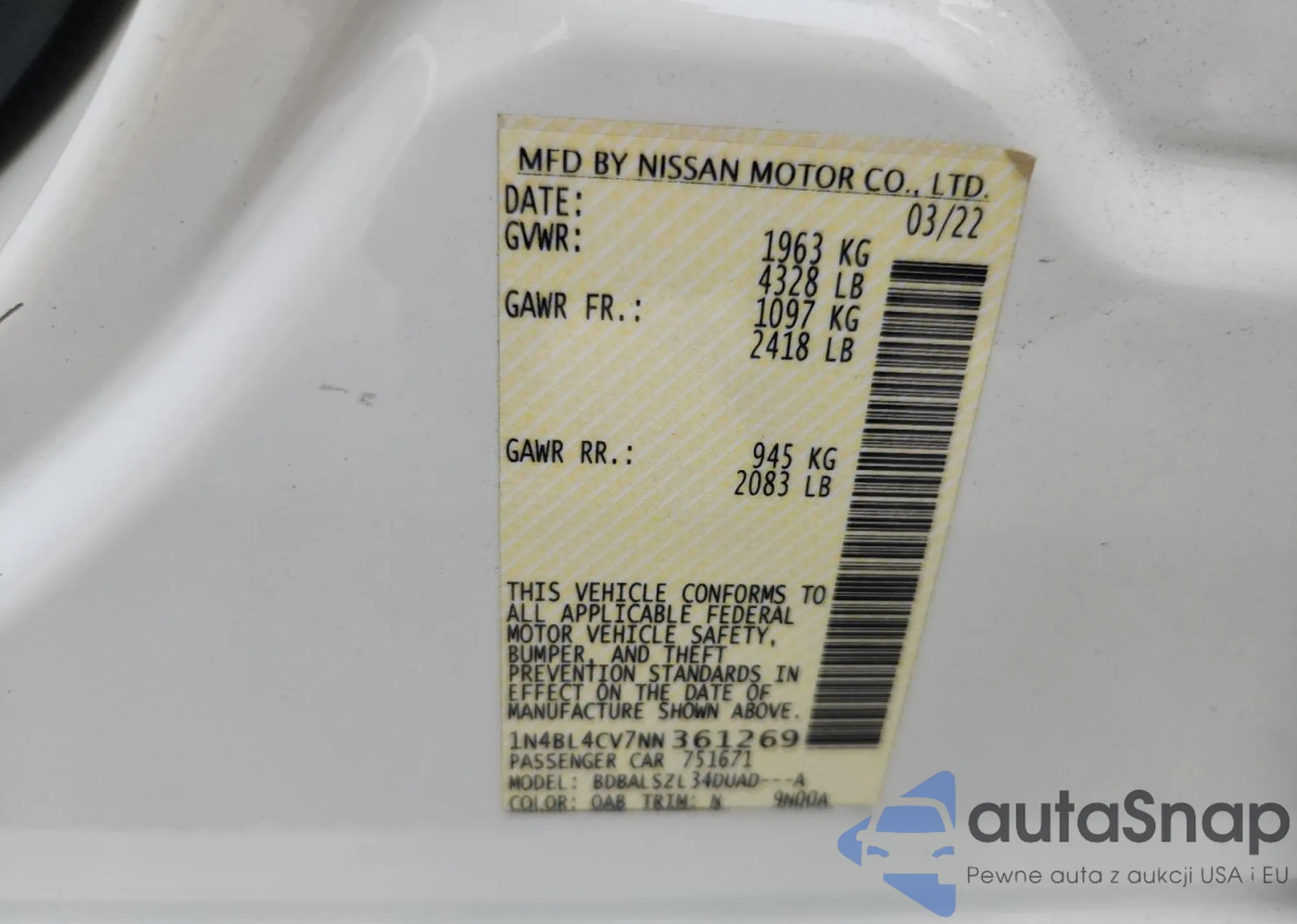 • VIN 1N4BL4CV7NN361269