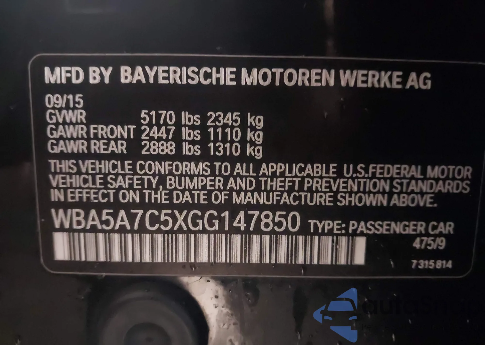 • VIN WBA5A7C5XGG147850