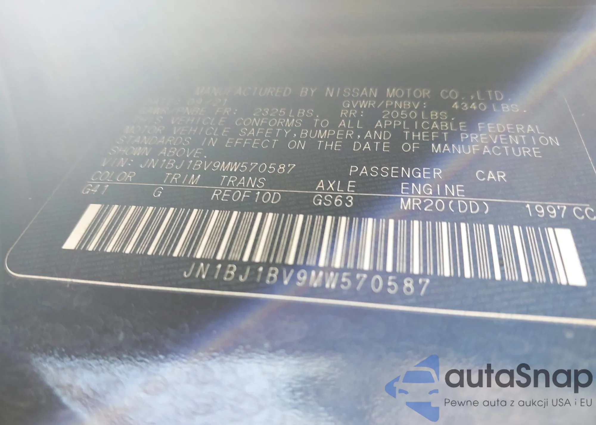 LOT: 43351969 VIN: JN1BJ1BV9MW570587