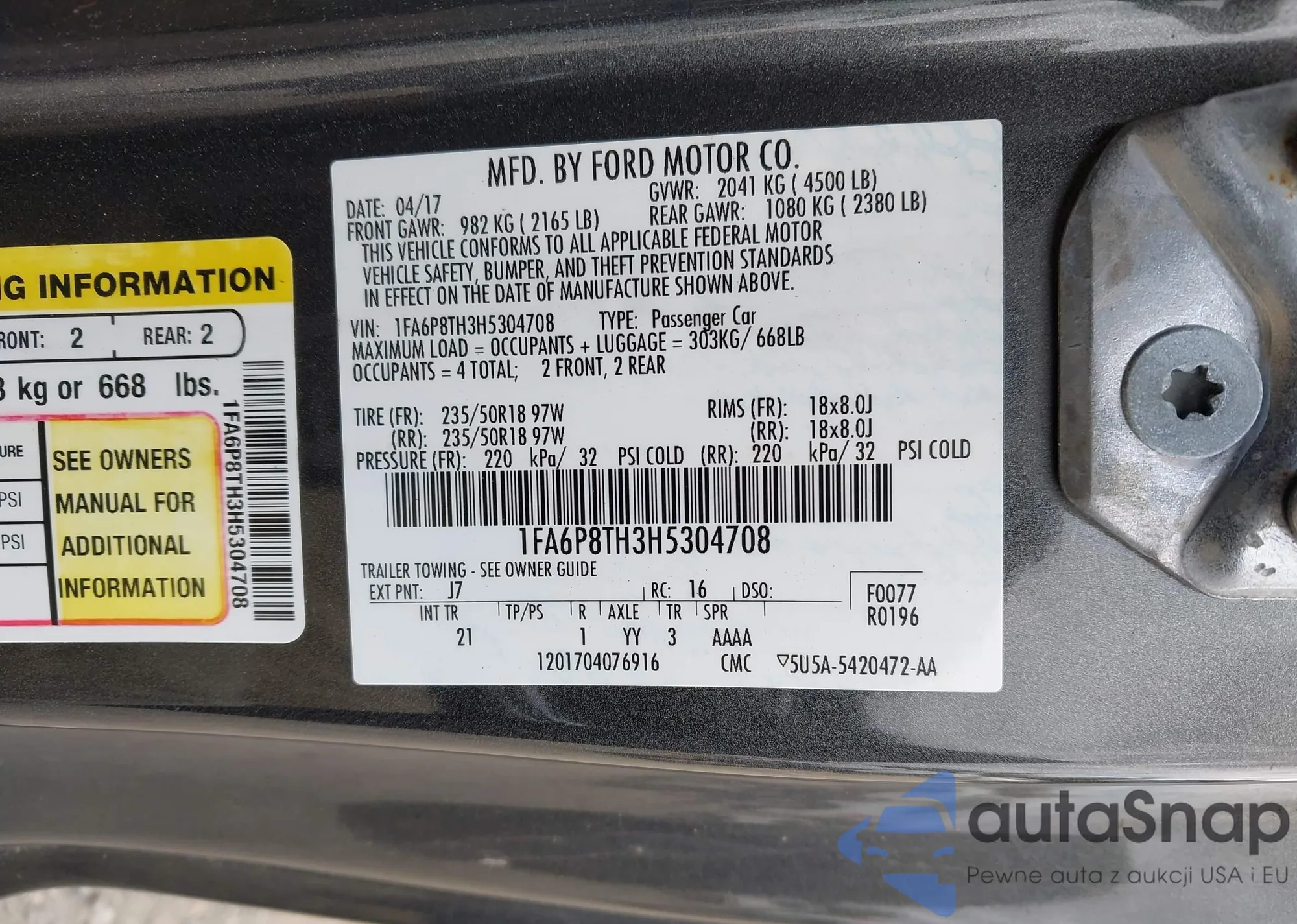 • VIN WDC0G4JB9HF120952