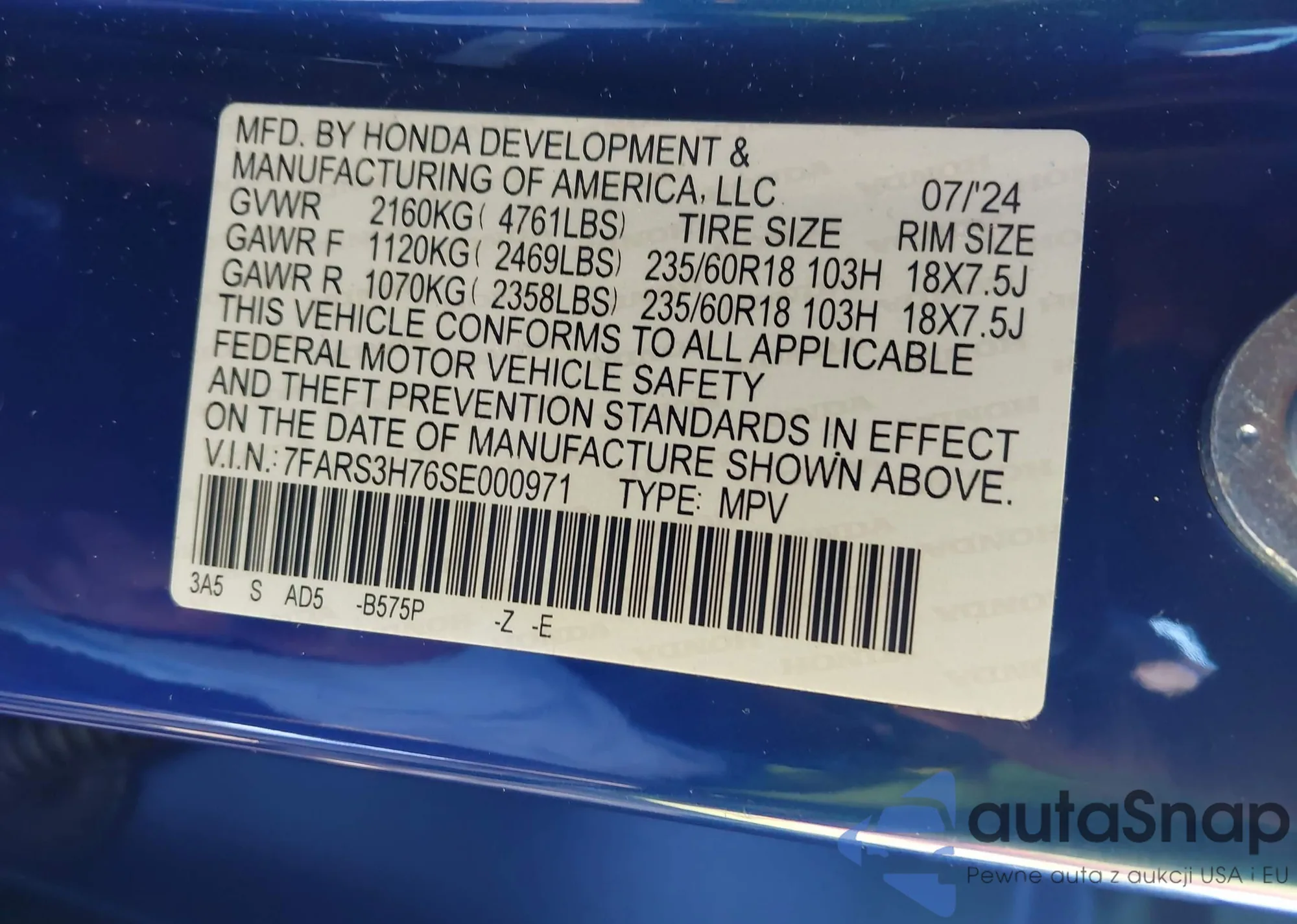• VIN 7FARS3H76SE000971