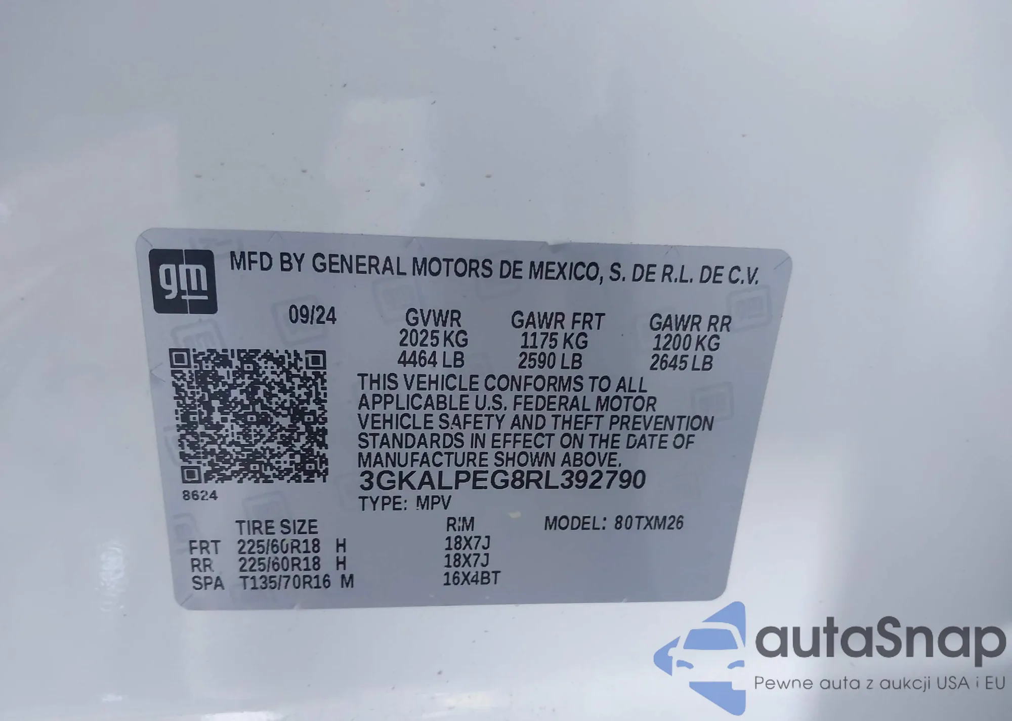 LOT: 43415891 VIN: 3GKALPEG8RL392790