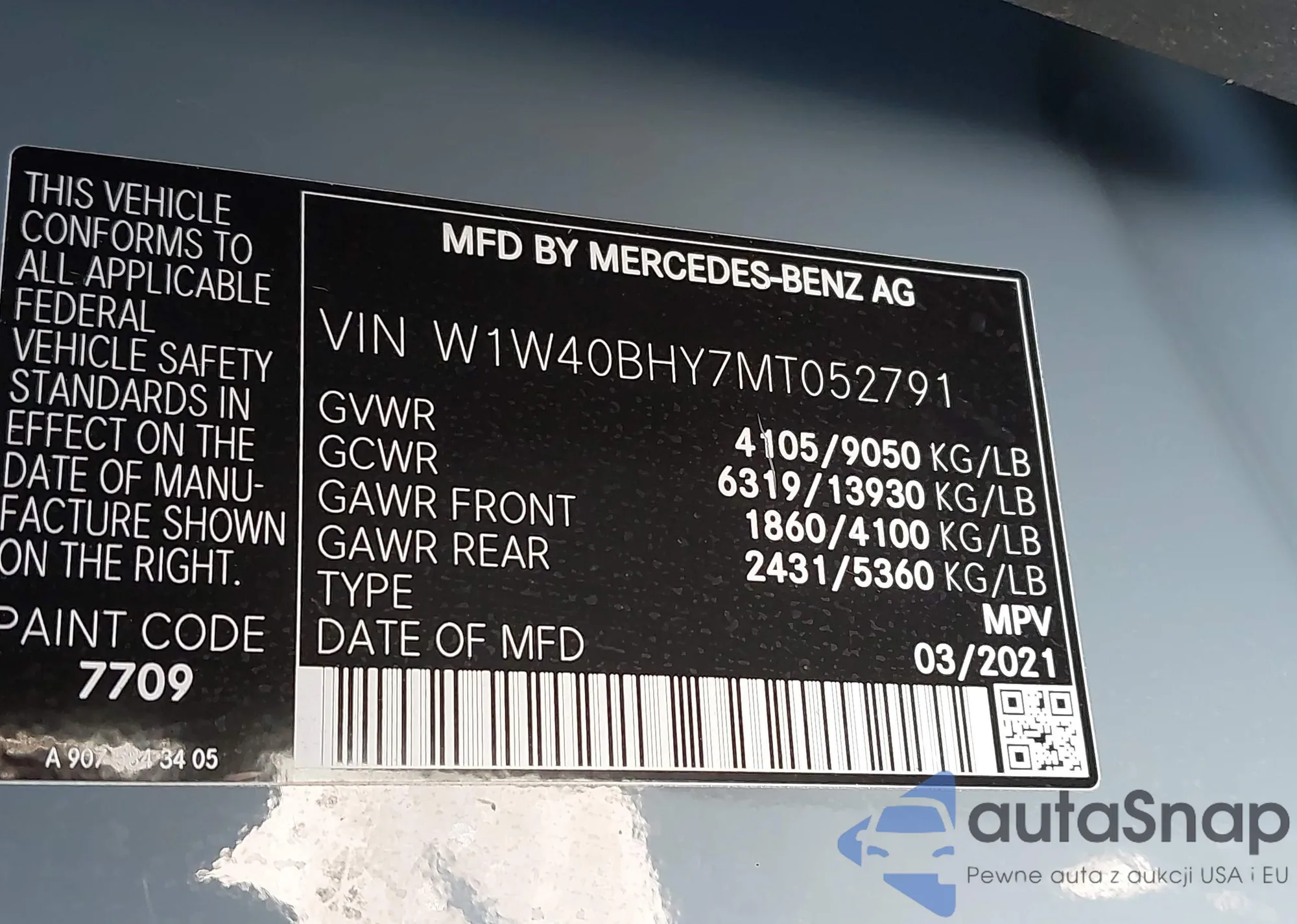 • VIN W1W40BHY7MT052791