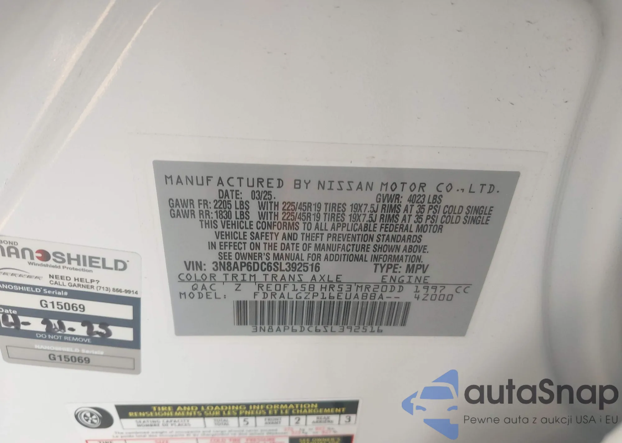 • VIN 3N8AP6DC6SL392516