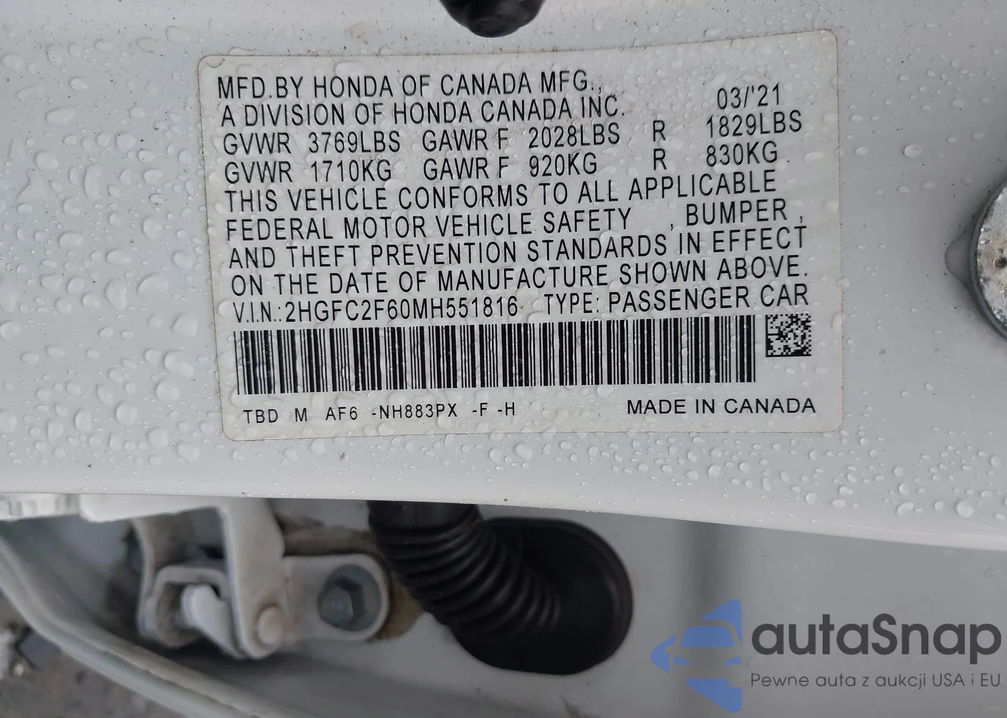 LOT: 42904703 VIN: JHLRE48777C086761