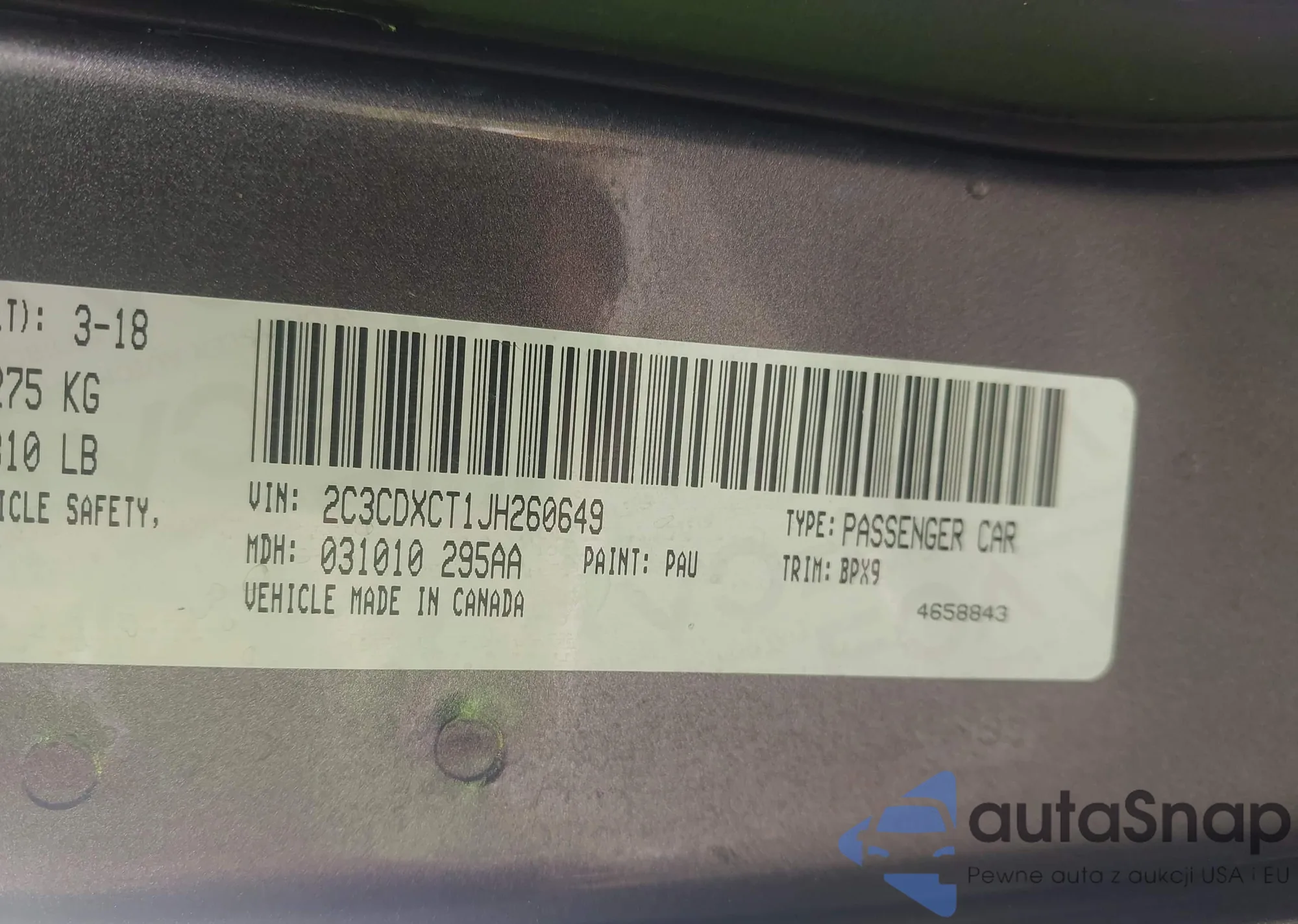• VIN 2C3CDXCT1JH260649