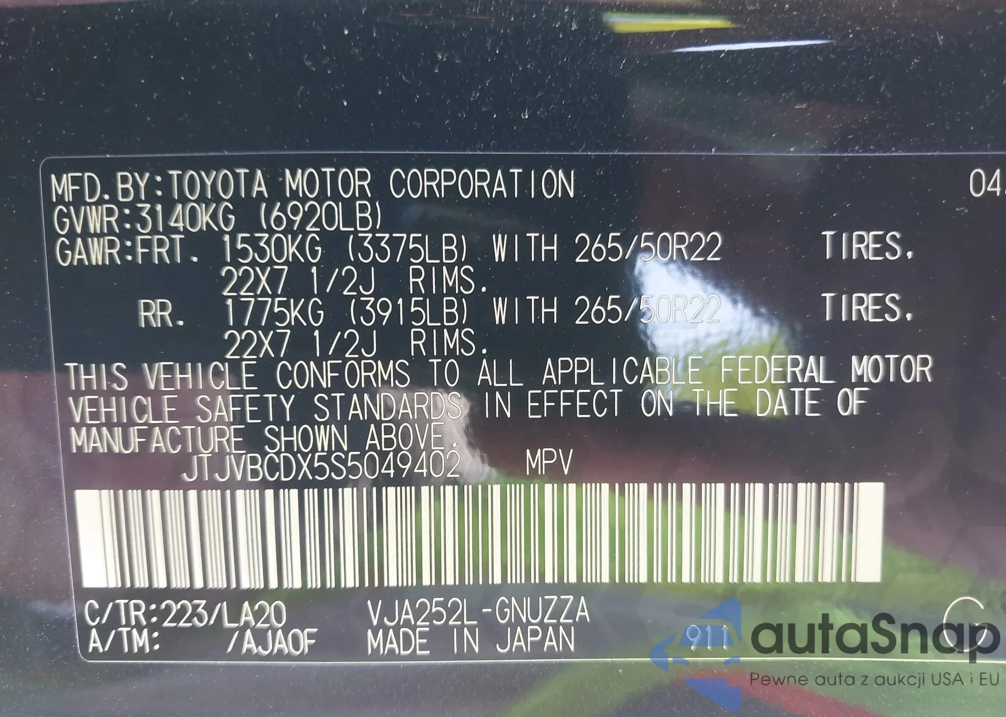 • VIN 3GKALYEG3TL148199