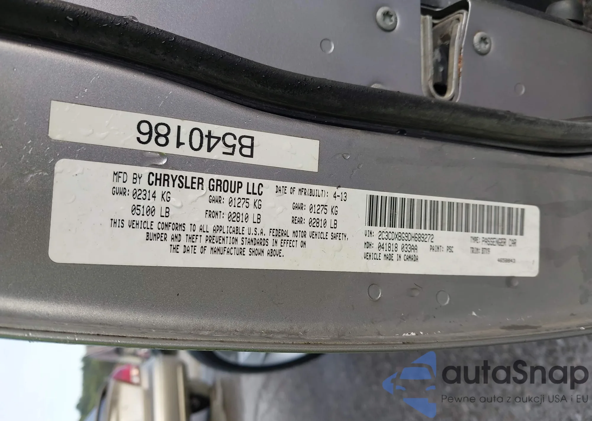 LOT: 43349837 VIN: 2C3CCAEG1HH617841
