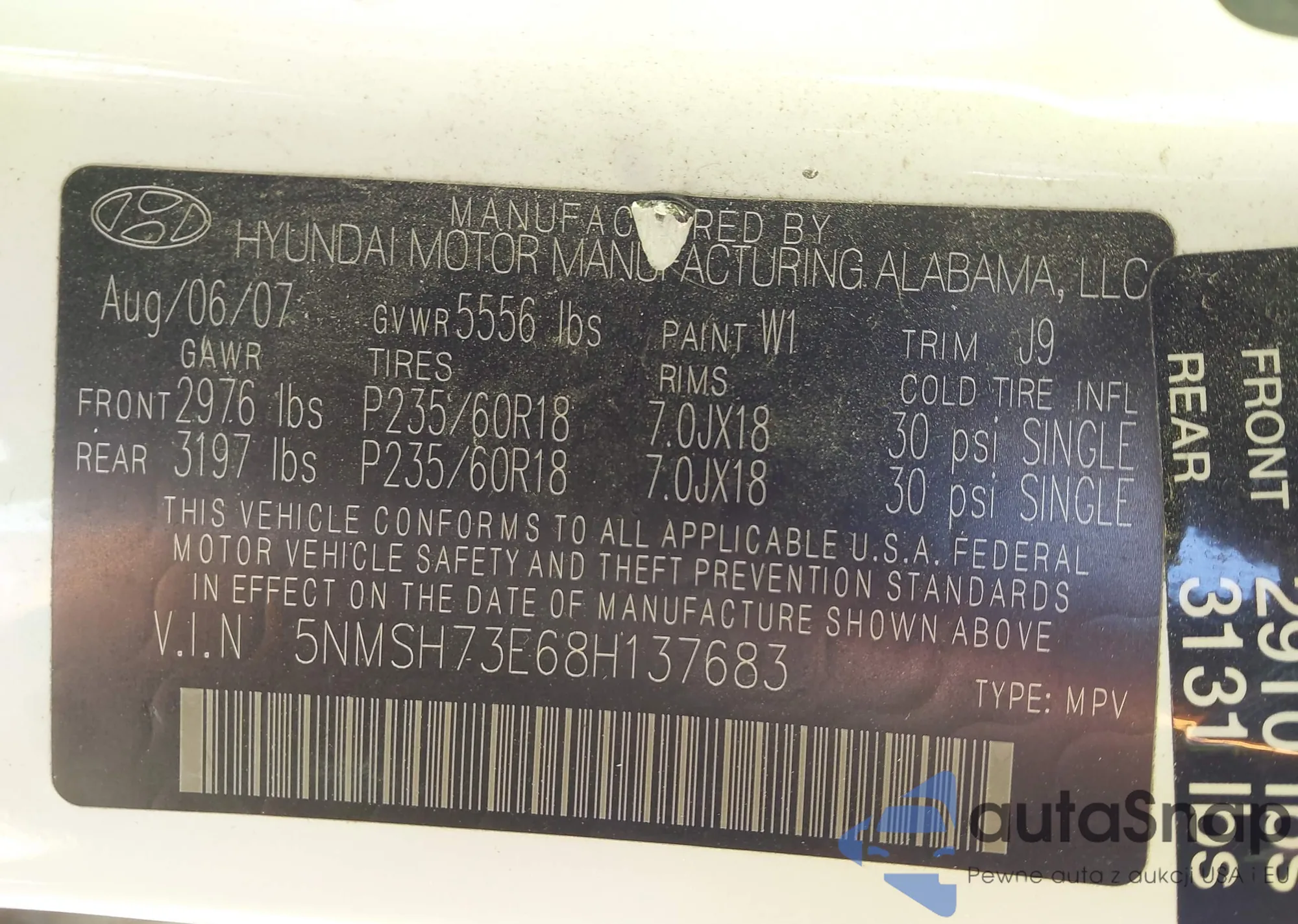 • VIN 5NMSH73E68H137683