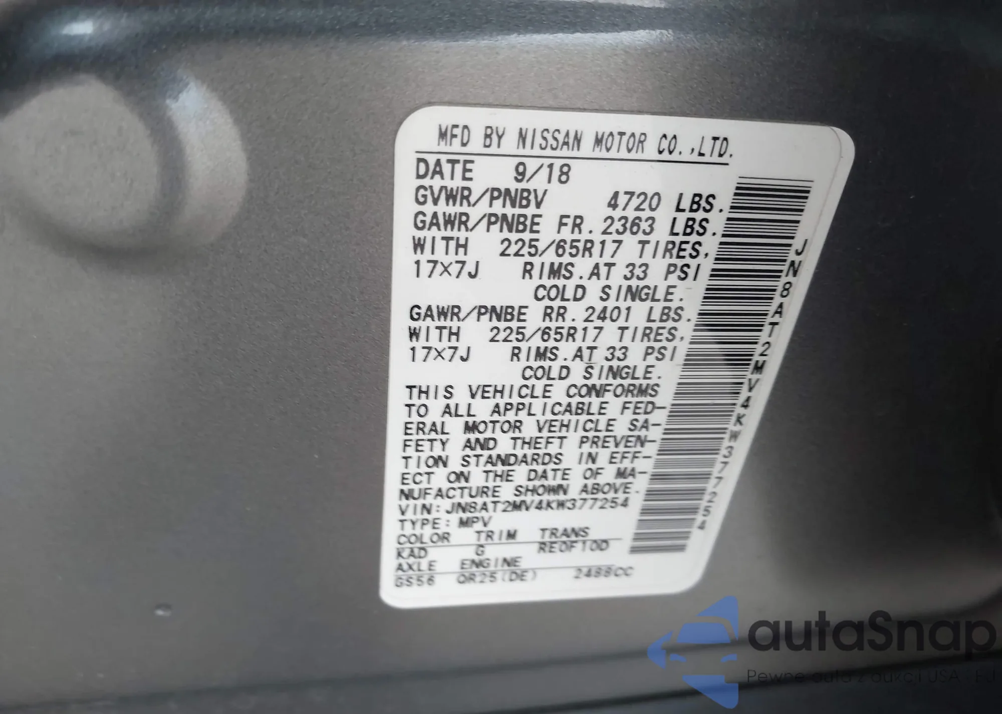• VIN 5N1AL0MN6FC504766