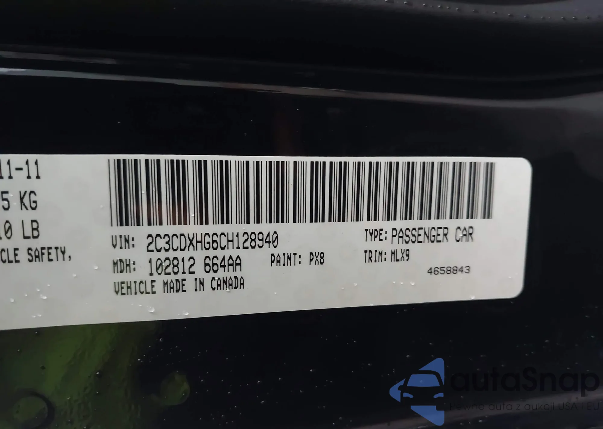 LOT: 43777751 VIN: 2C3CDXHG6CH128940