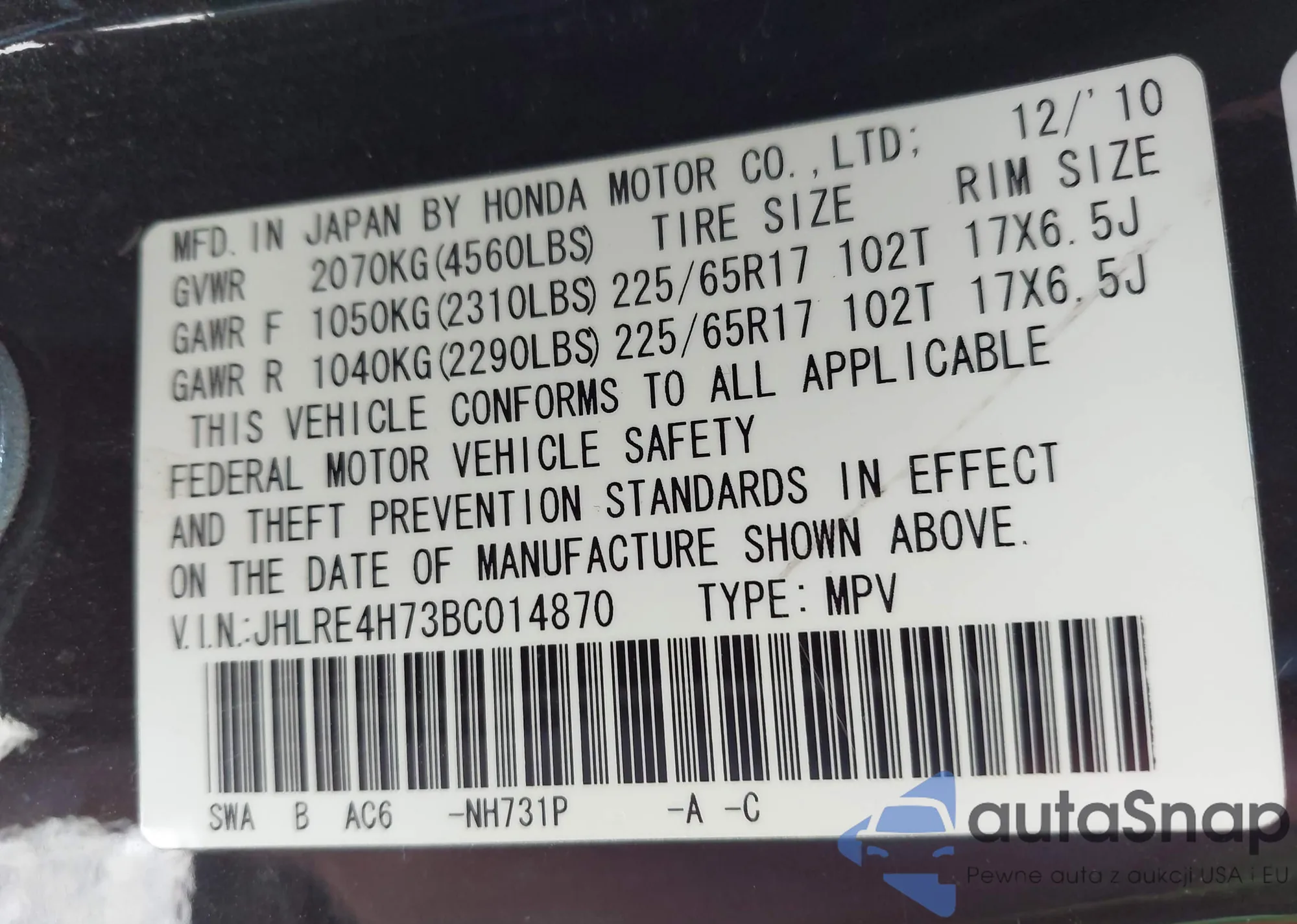 • VIN JHLRE38729C012676