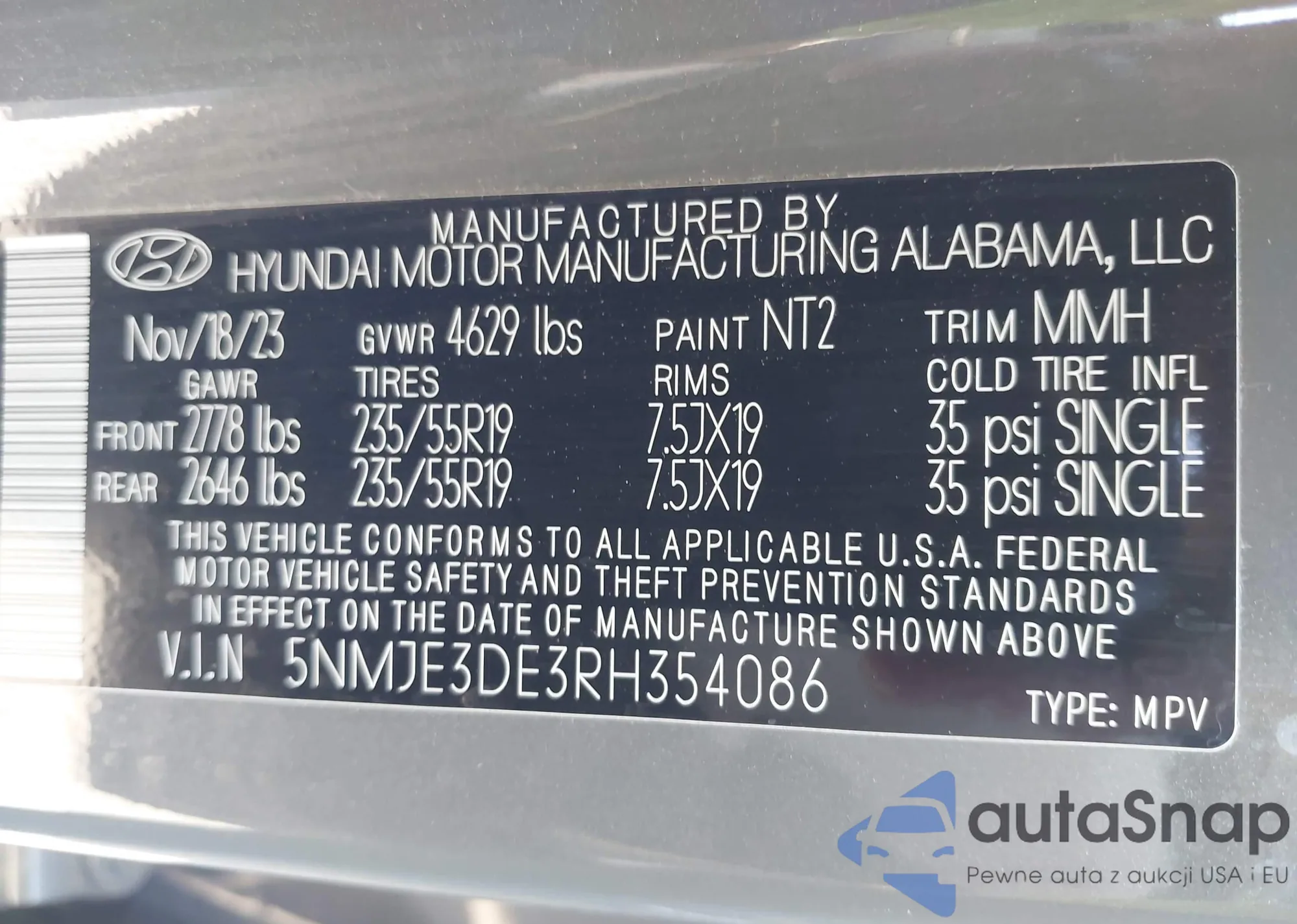 LOT: 43122000 VIN: 5NMJE3DE3RH354086