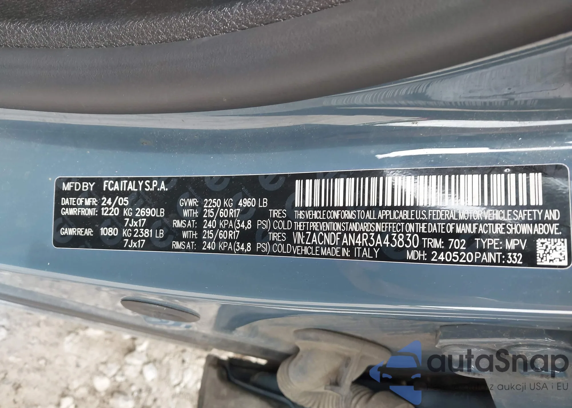 LOT: 43166810 VIN: 3C4NJDBB3LT216649