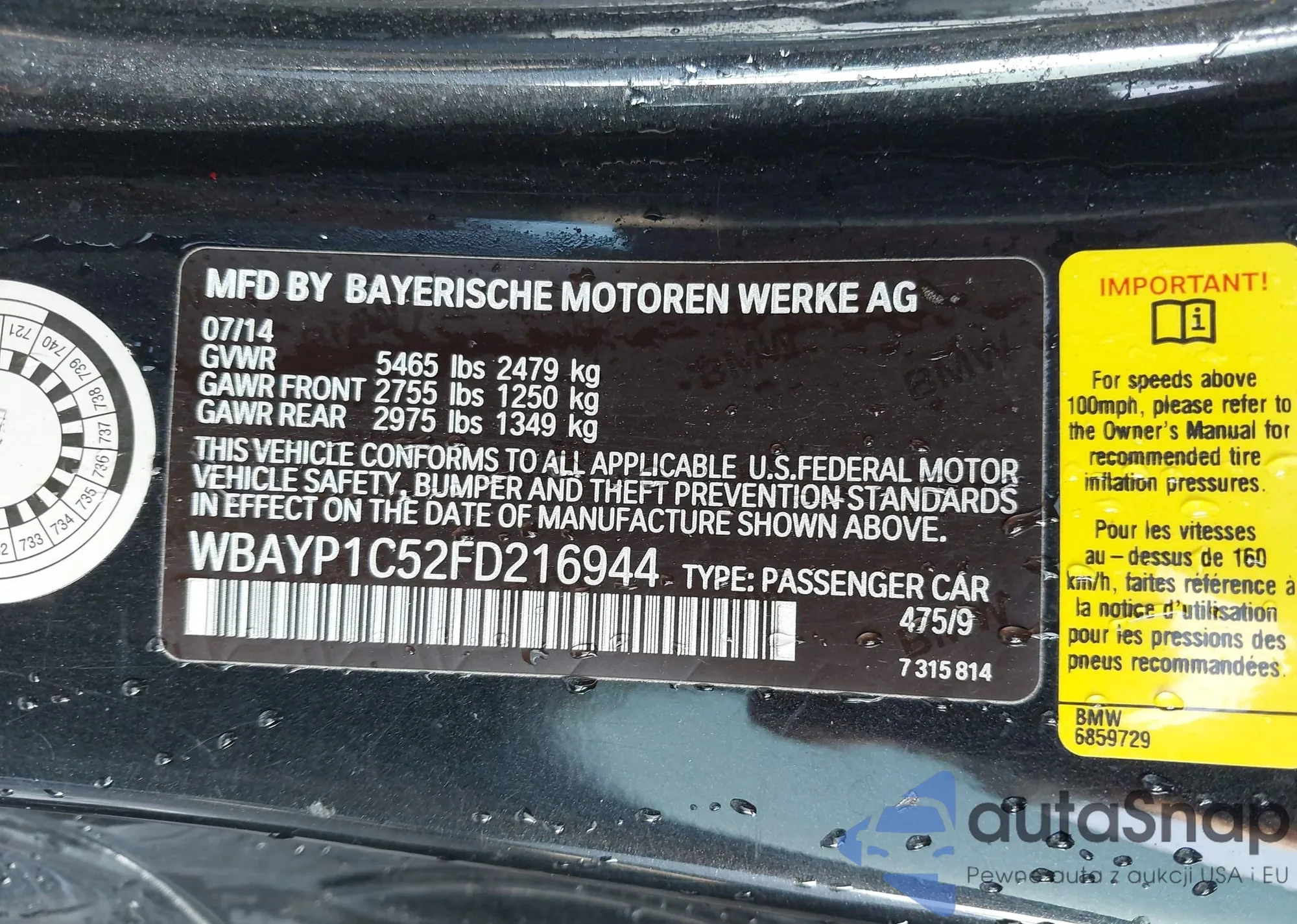 • VIN WBAYP1C52FD216944