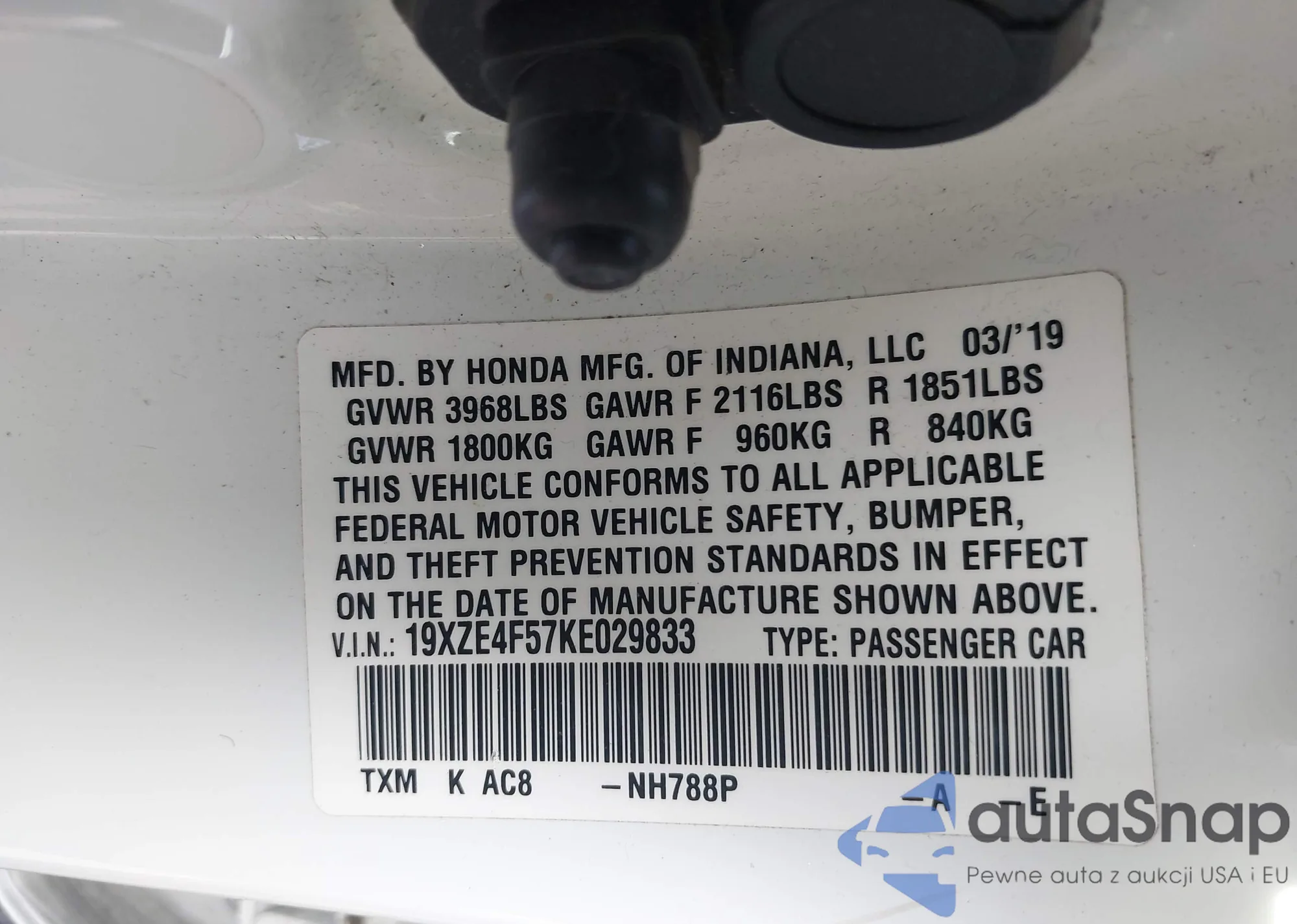 • VIN 19XZE4F57KE029833