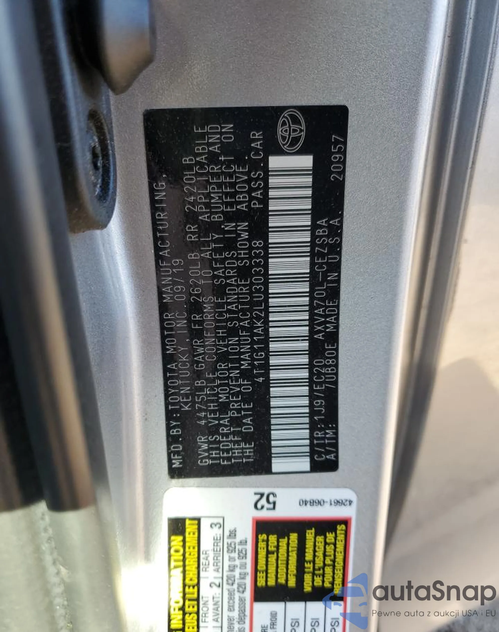• VIN 4T1G11AK2LU303338