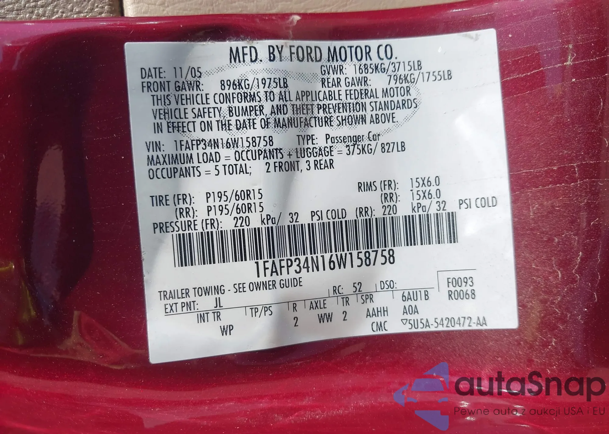 • VIN 1FAHP60A14Y104987