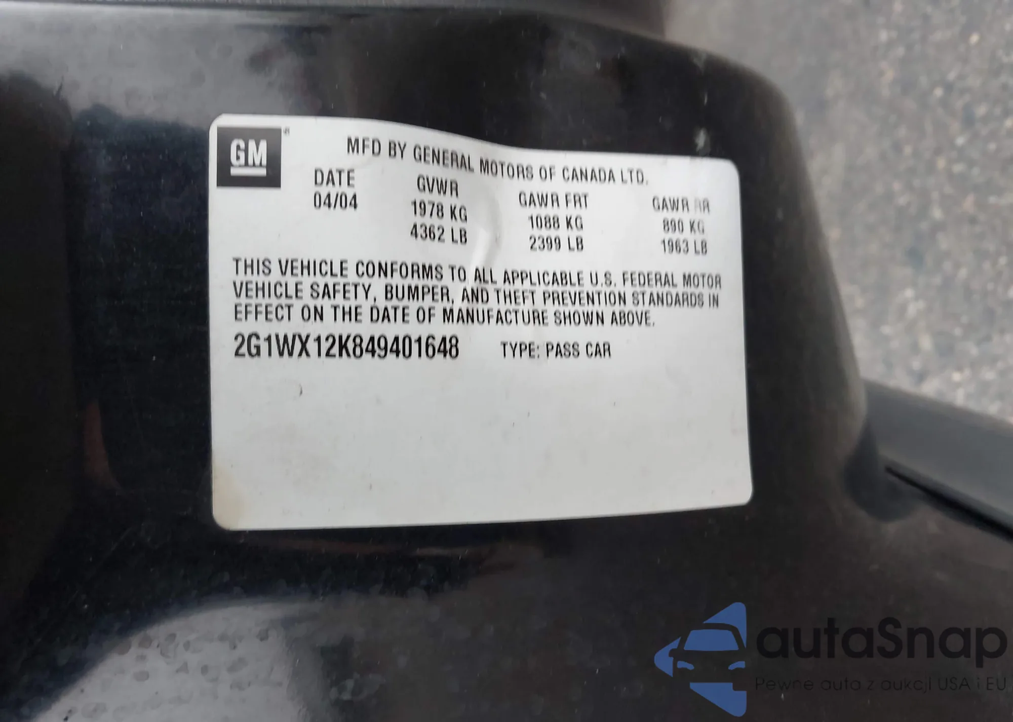 • VIN 2G1WX12K849401648