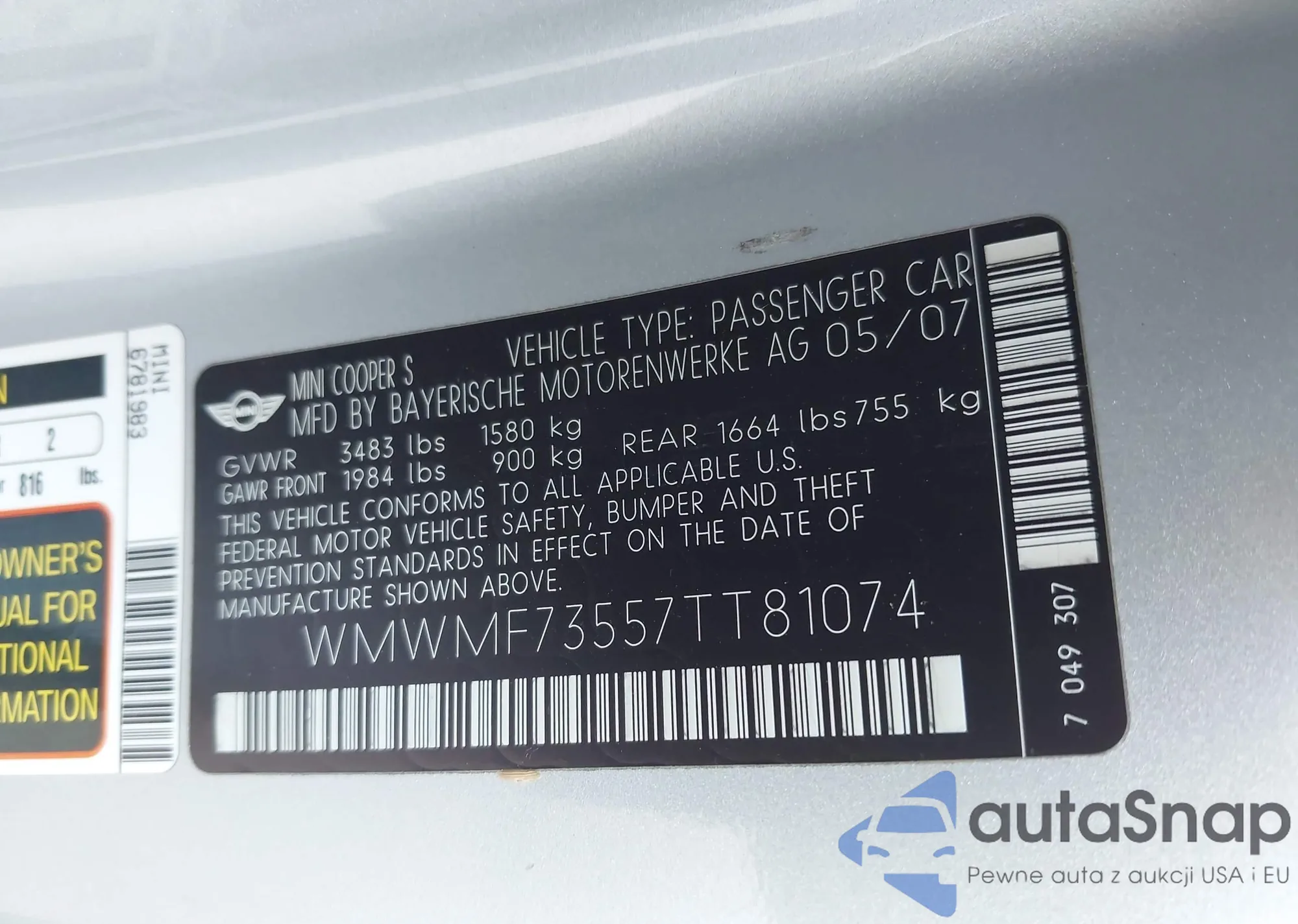 LOT: 43719777 VIN: WMWMF73557TT81074