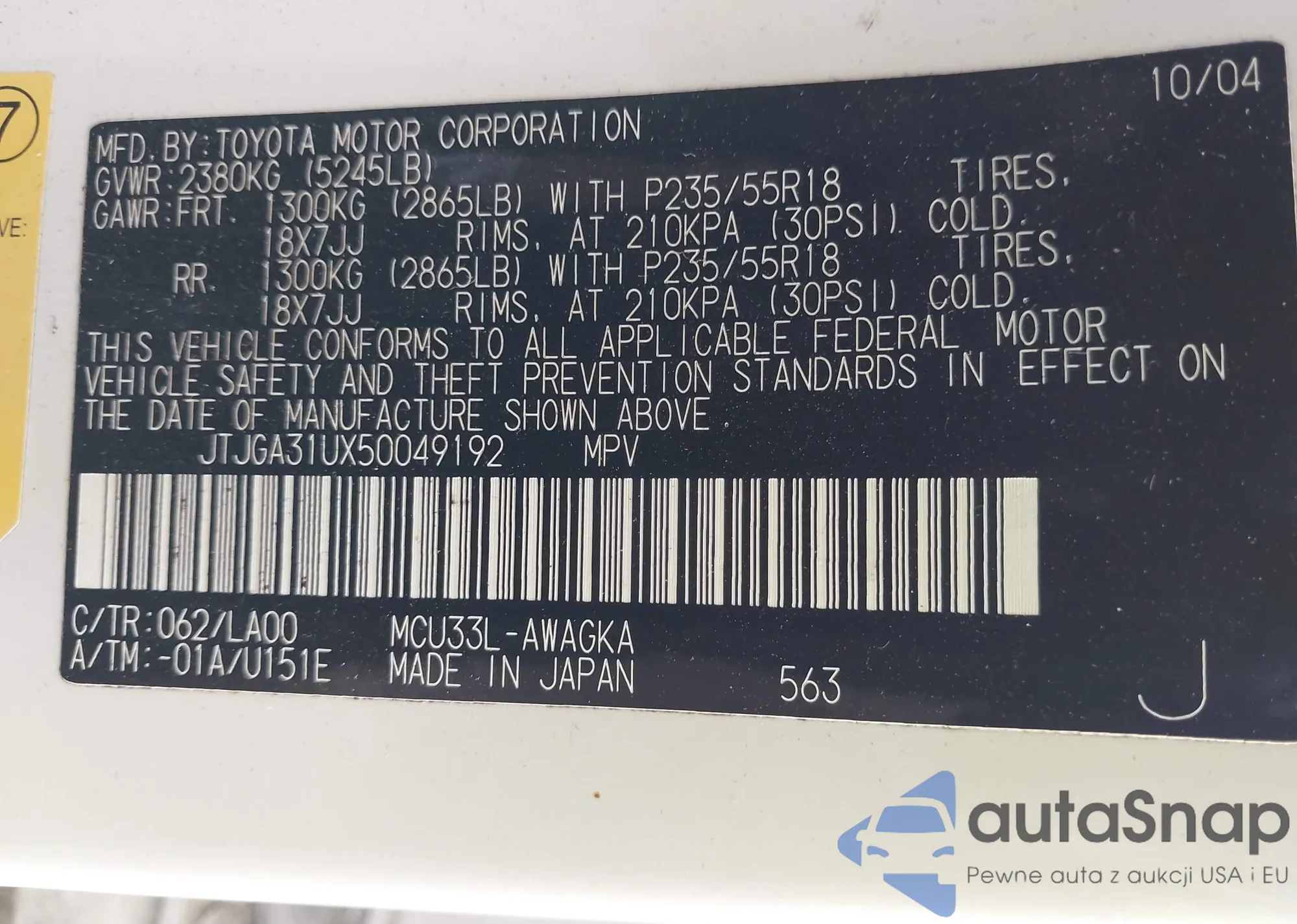 • VIN JTJGA31UX50049192
