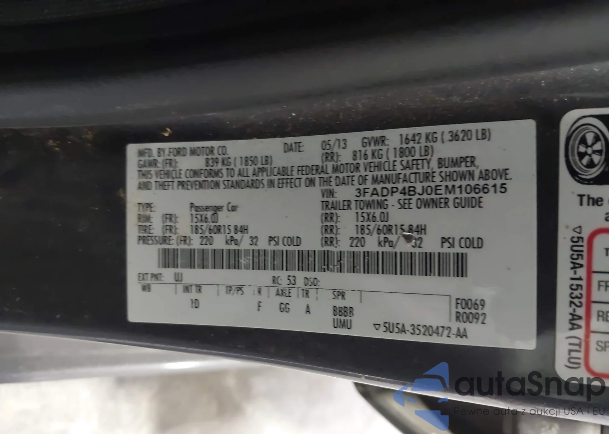 LOT: 43734289 VIN: 3FAHP06Z47R105547