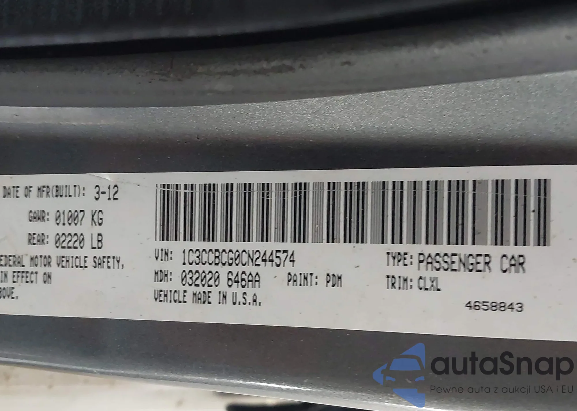 LOT: 43831353 VIN: 1C3CCBCG0CN244574
