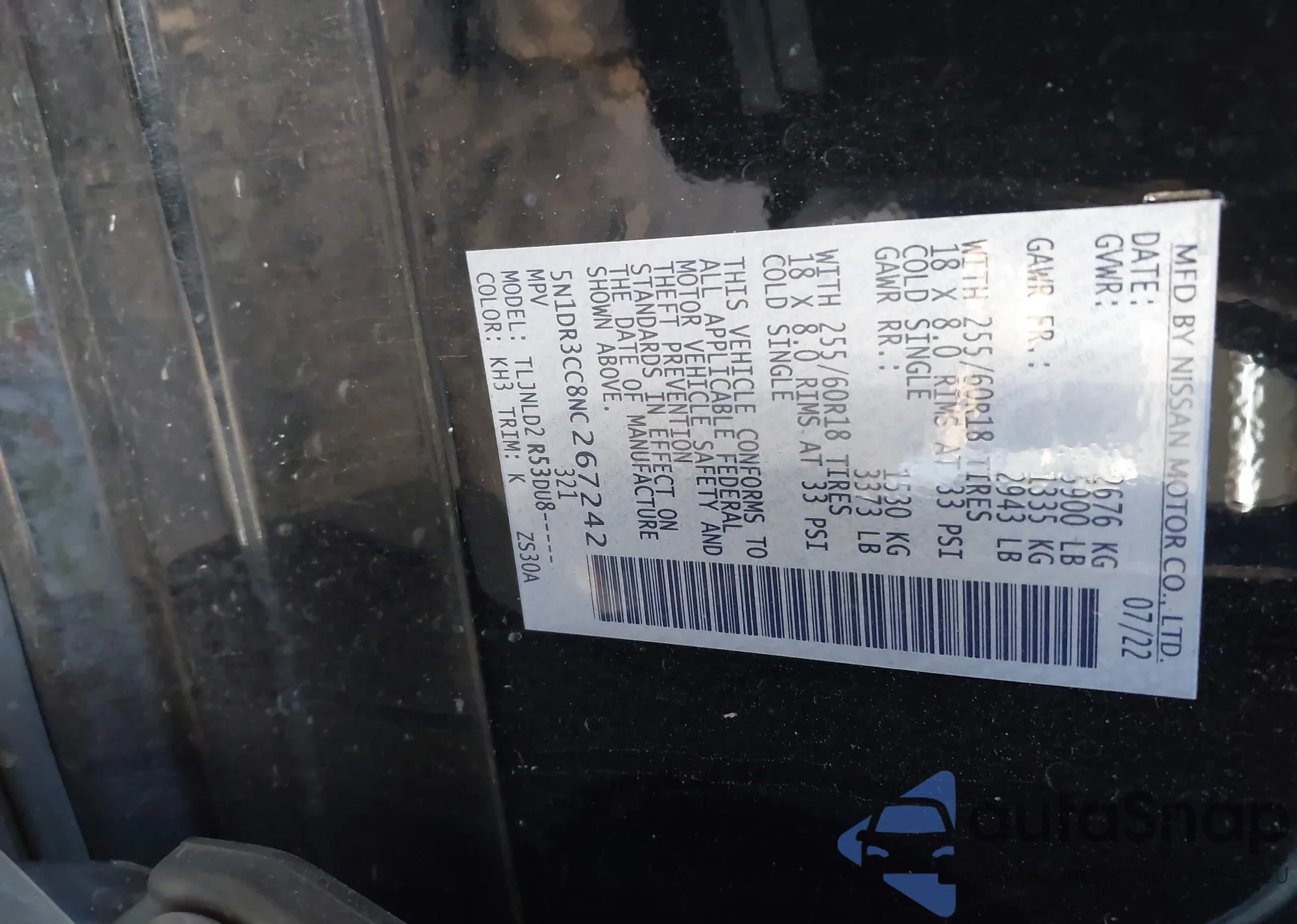 LOT: 43426573 VIN: 5N1DR3CC8NC267242