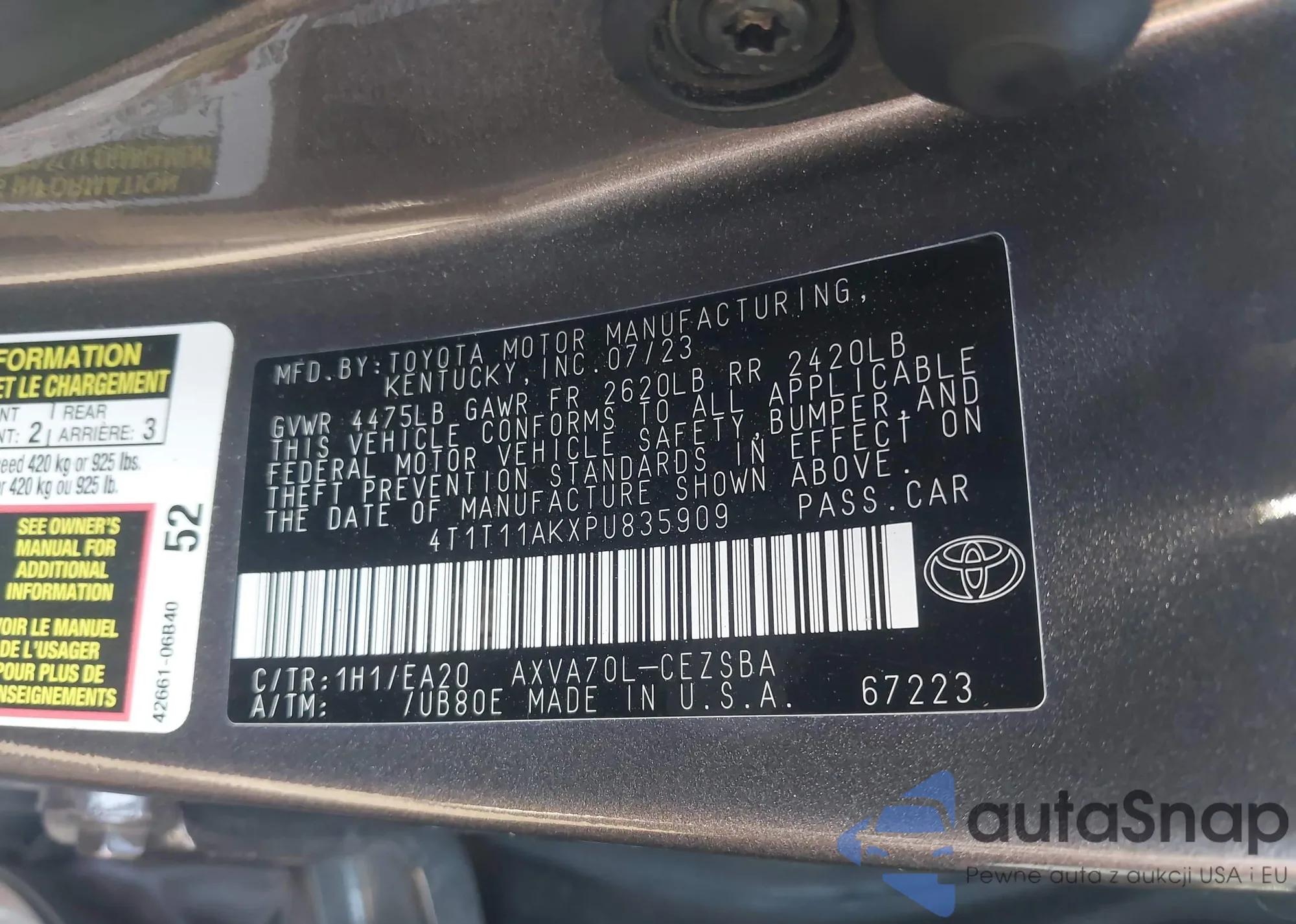 • VIN 4T1K31AK2MU569674