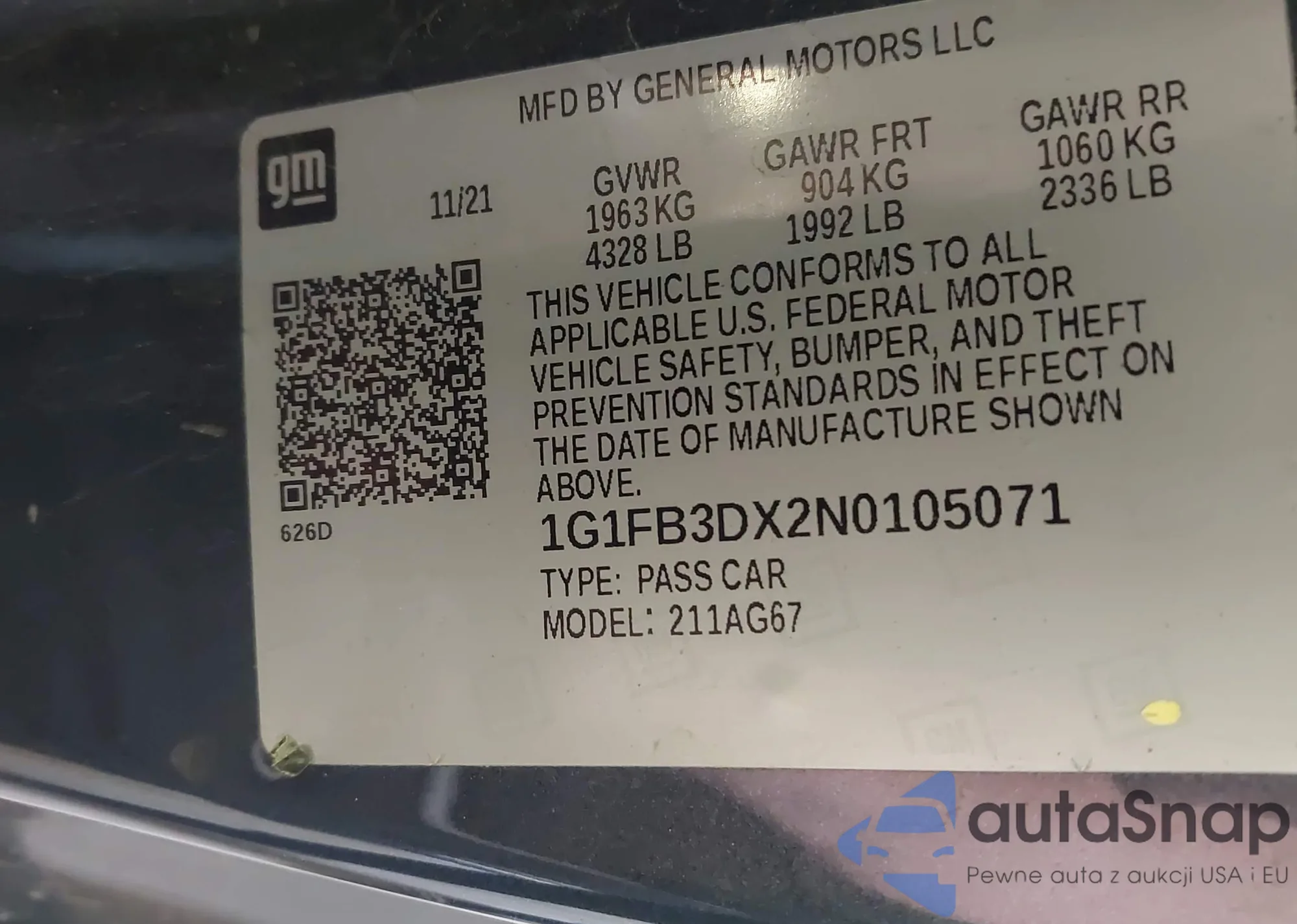 LOT: 42212100 VIN: 1G1FB3DX2N0105071