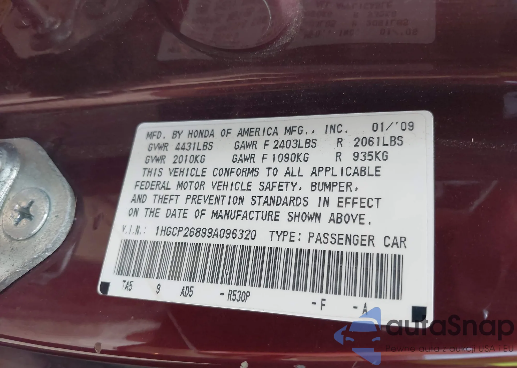 LOT: 43658412 VIN: 1HGCP268X8A003979