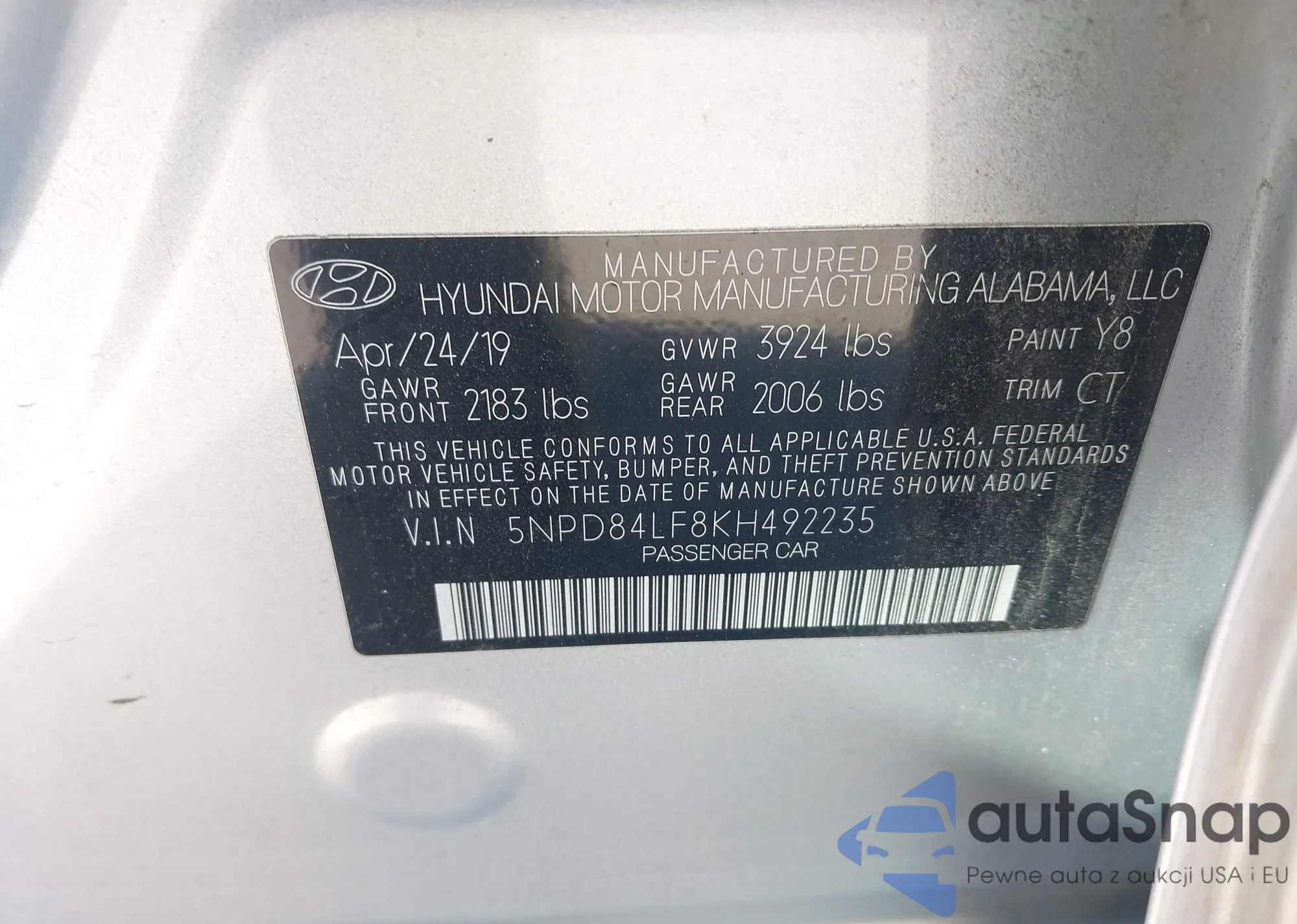 LOT: 43549501 VIN: 5NPD84LF8KH492235
