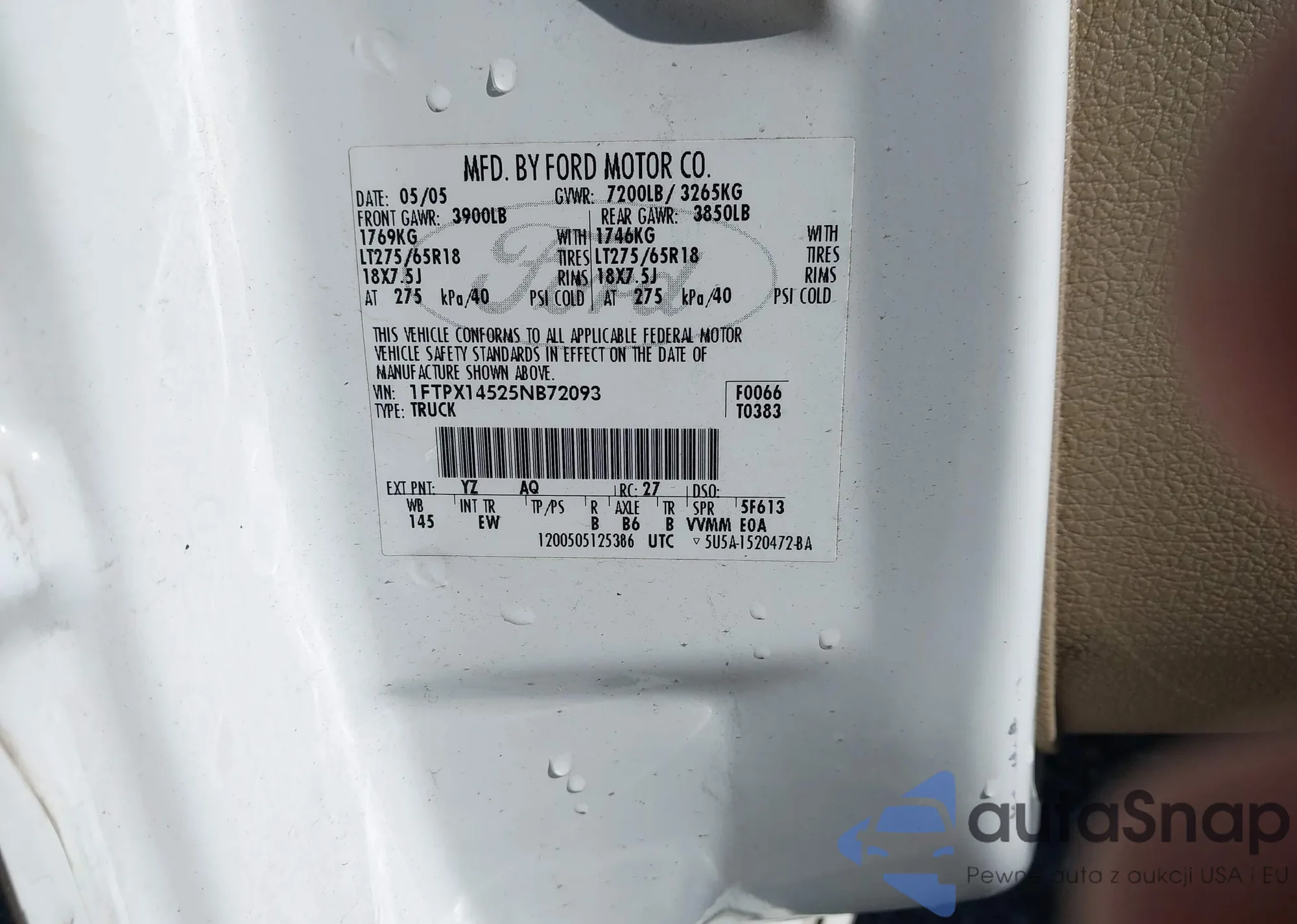 • VIN 1FTPX14525NB72093