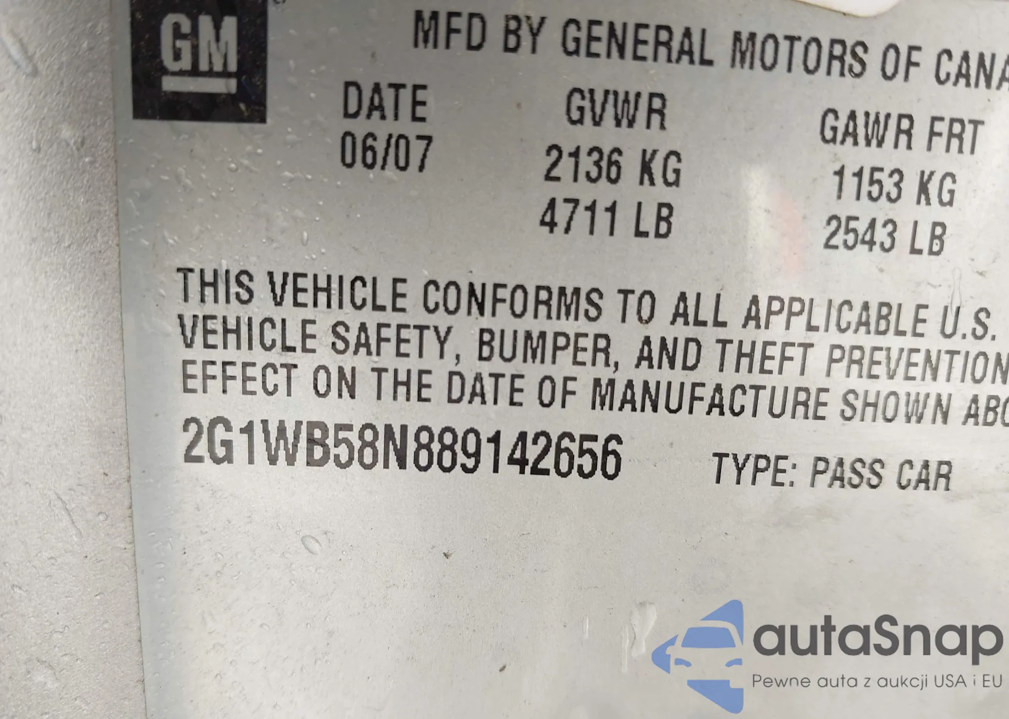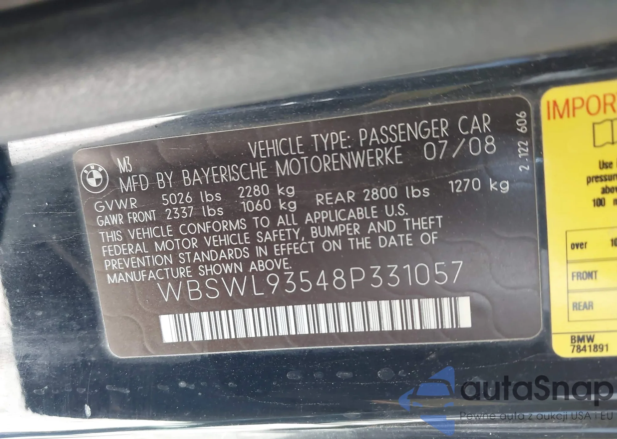 LOT: 43649968 VIN: WBSWL93548P331057