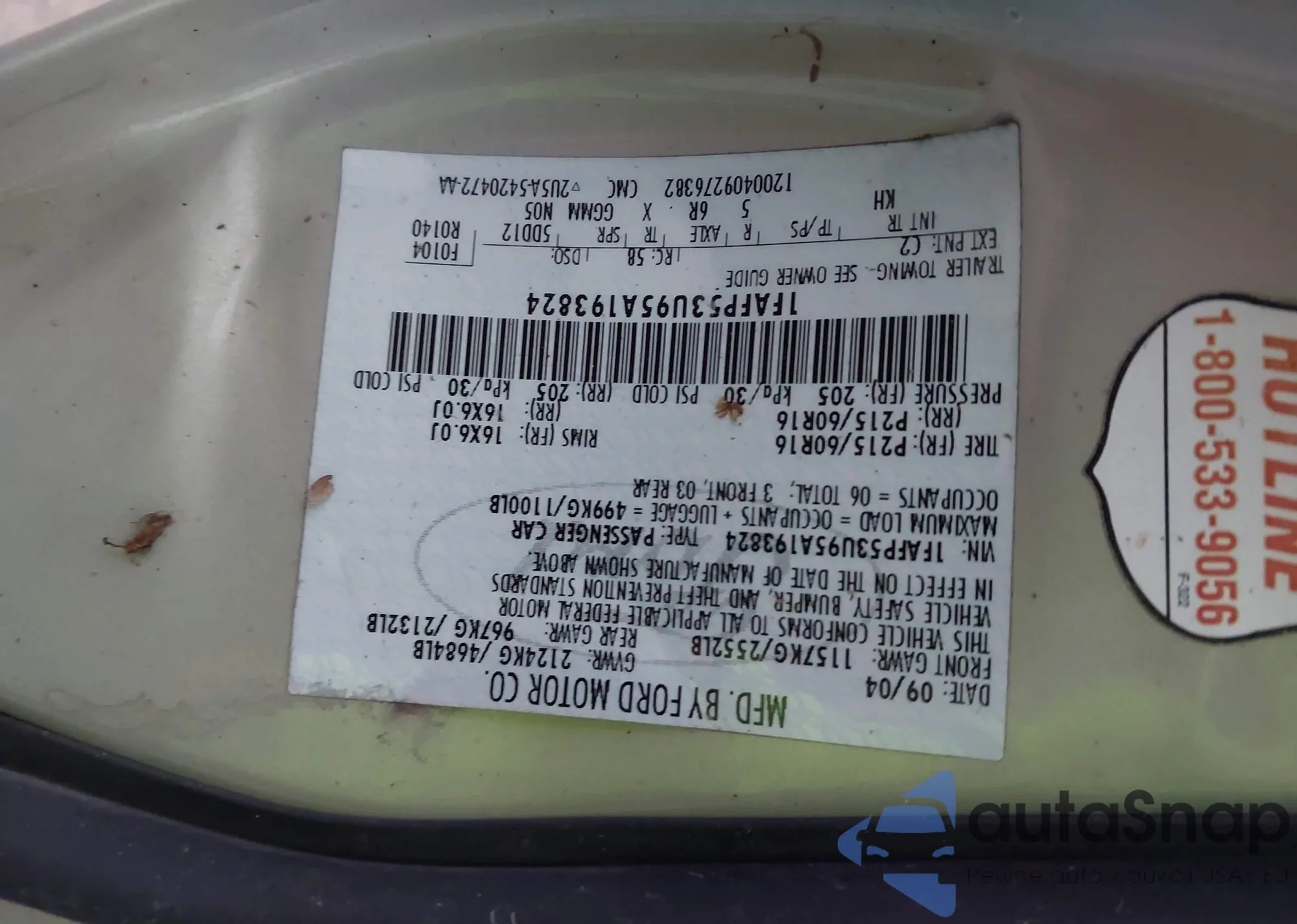 LOT: 43661993 VIN: 1FAFP53U95A193824