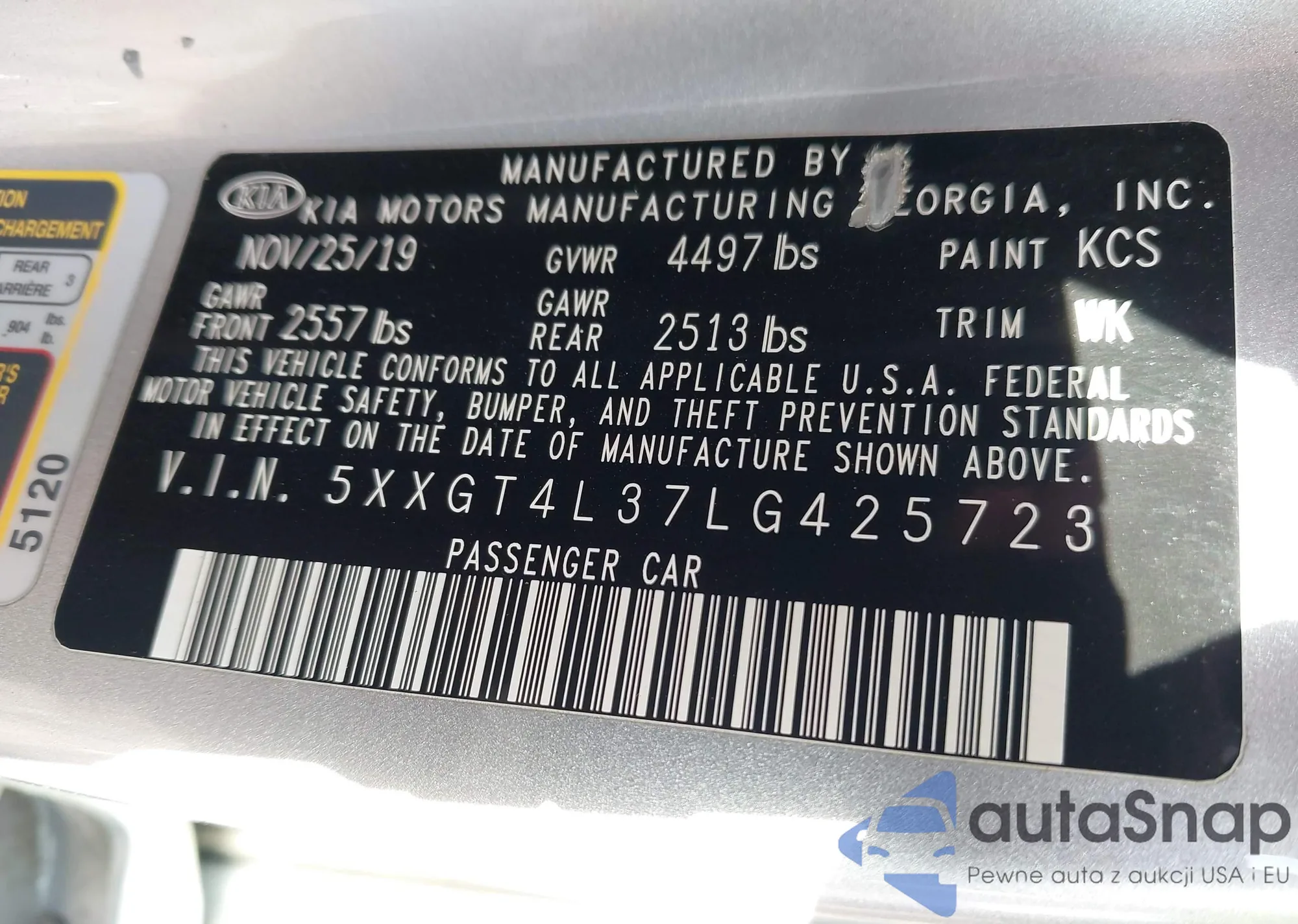 • VIN 5XXGT4L37LG425723