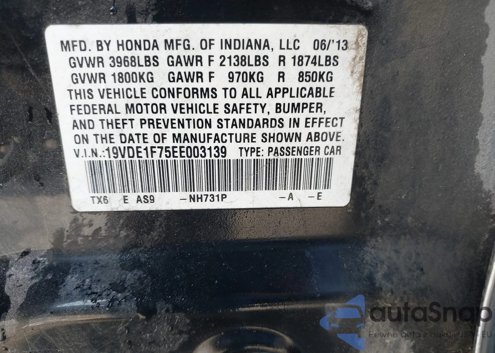 • VIN 1HGCP268X8A003979