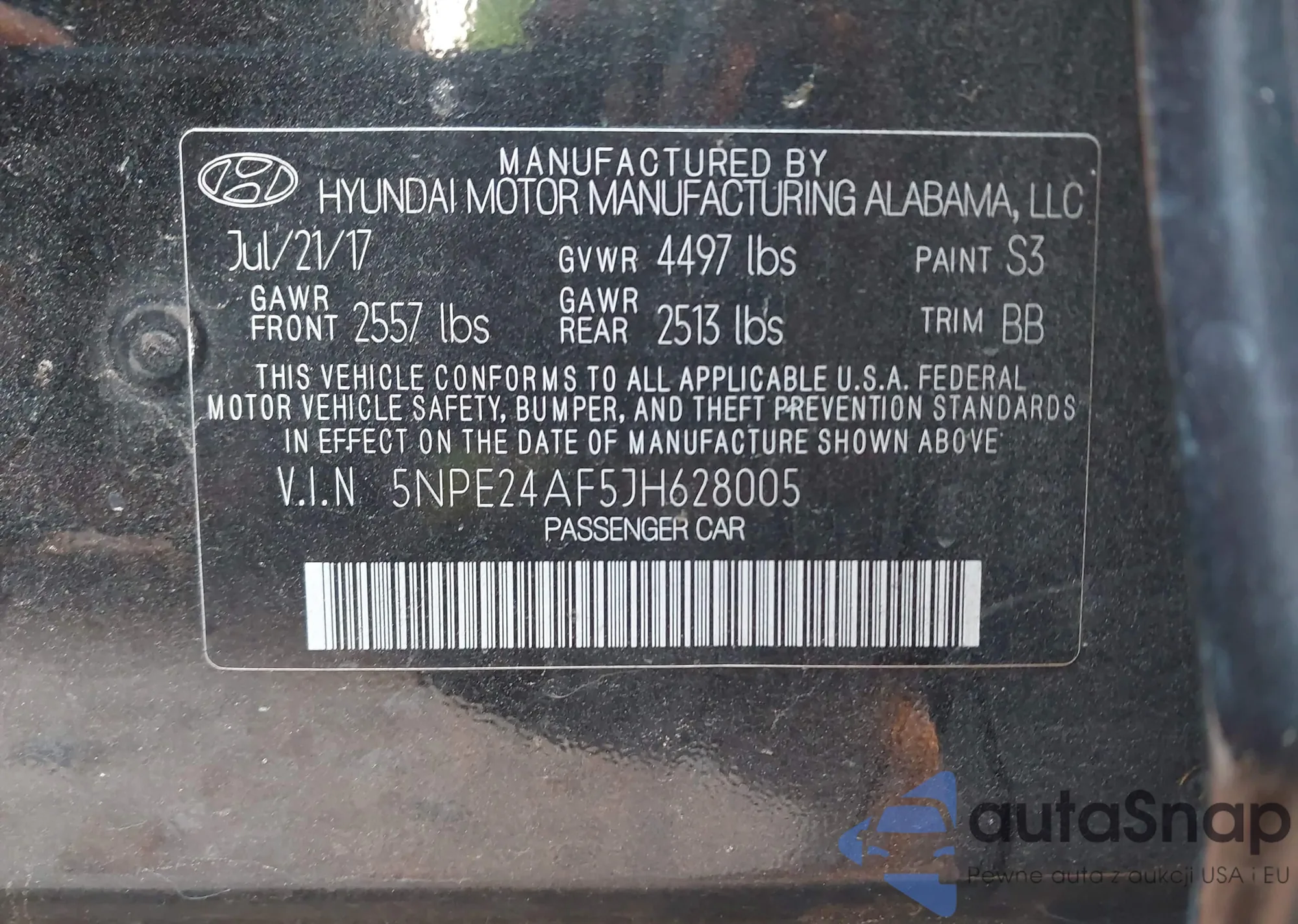 • VIN 5NPE24AF5JH628005