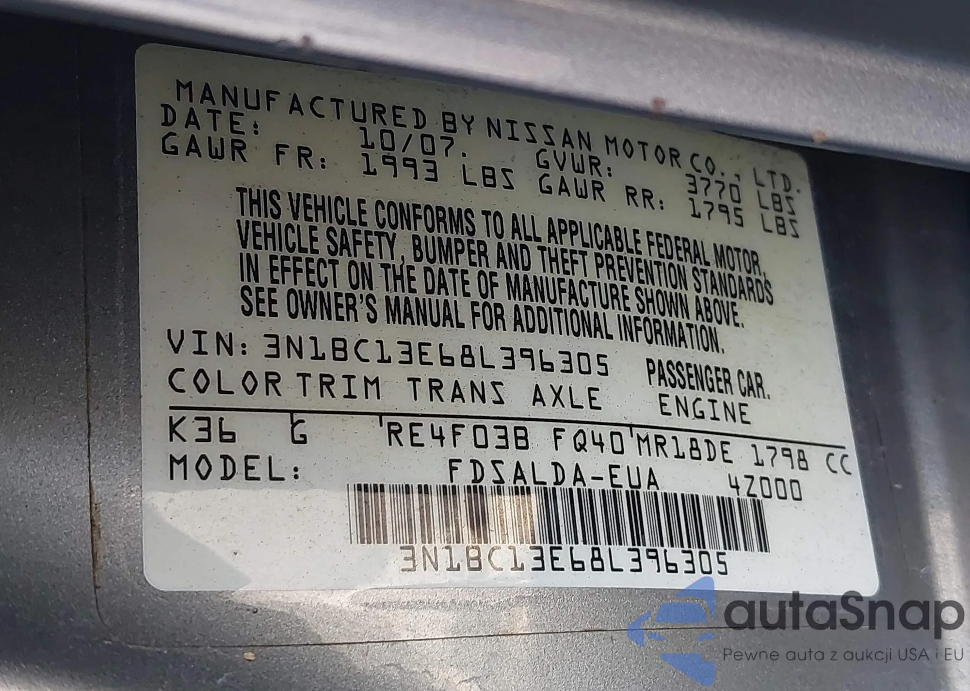 • VIN 3N1BC13E68L396305