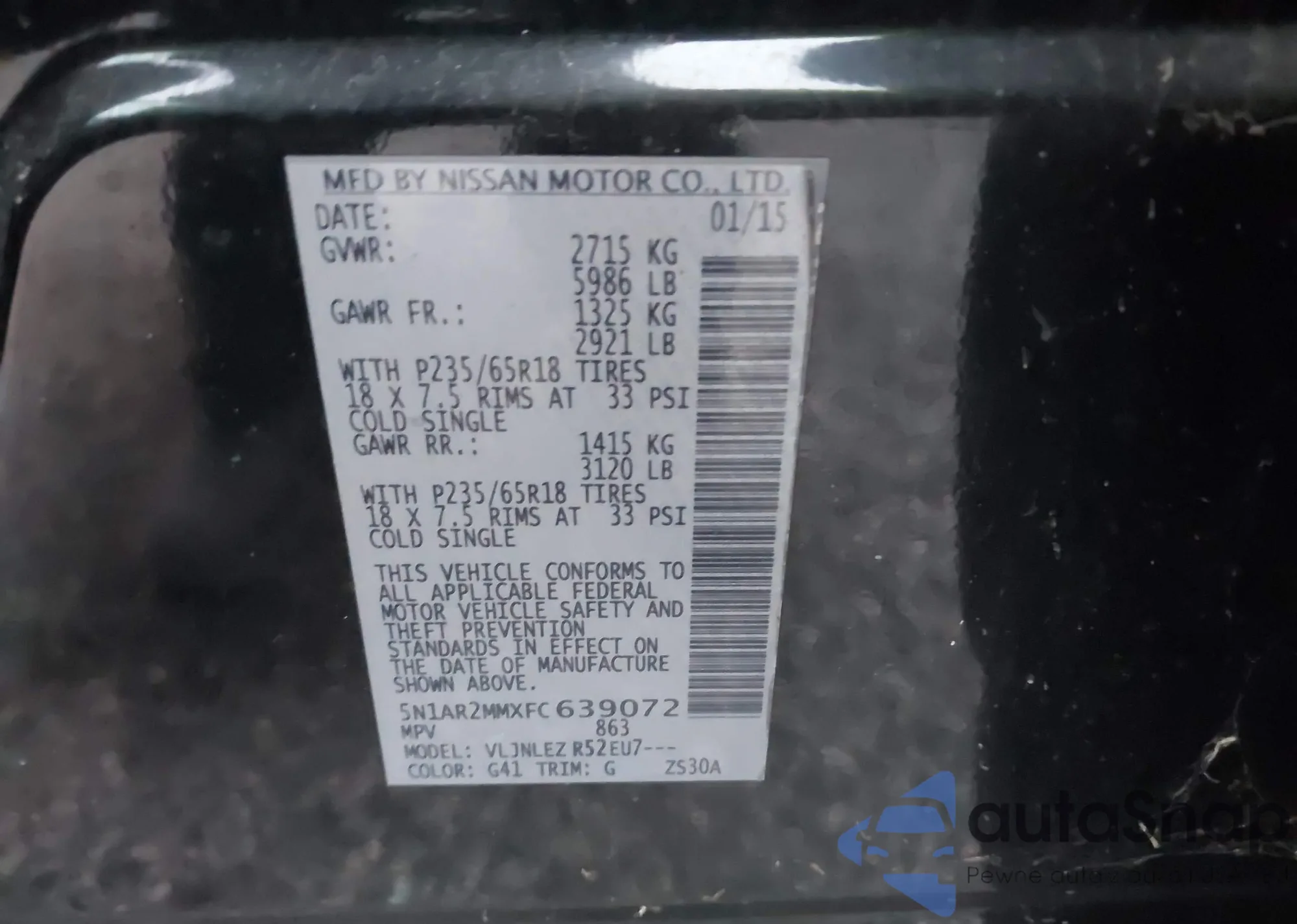 LOT: 43693449 VIN: 5N1AR2MMXFC639072